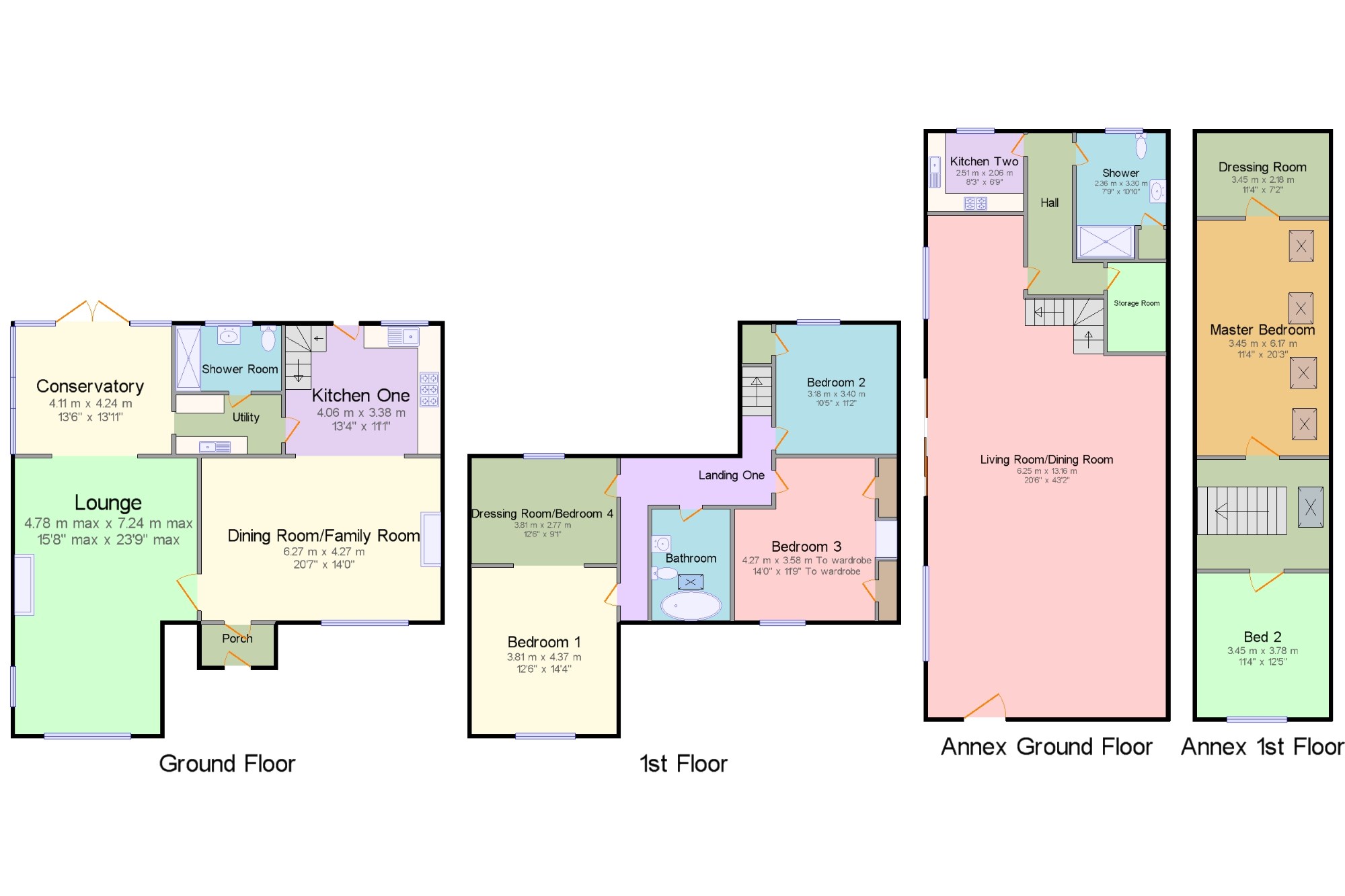 Master Bedroom Annex11'4" x 20'3" (3.45m x 6.17m).