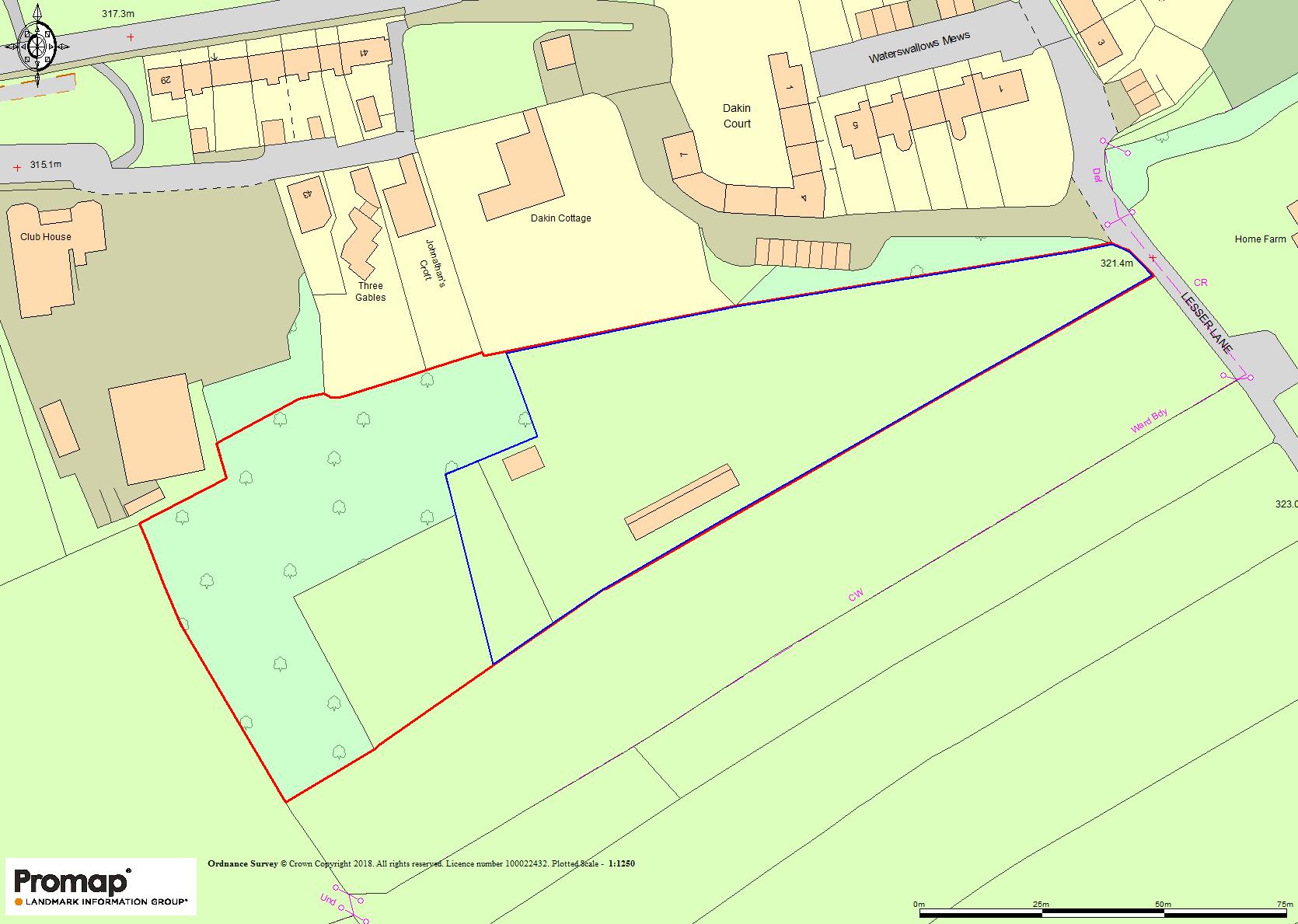 The sale offers an exciting opportunity to purchase a residential development site extending to 2.23 acres (0.90ha) in total, with benefit of Outline Planning permission for five residential dwellings set over 1.19 acres (0.48ha). The land that was not included within the Planning submission offers the potential to expand the site (subject to the necessary consents and widening of the highway) and it is our understanding that informal discussions with the Local Planning Authority have already taken place to this effect. The site as existing is bounded by a mixture of mature hedgerow and within is down to grass and can be seen delineated red on the plan, with vehicular access off Lesser Lane. The part of the site with benefit of Planning permission can be seen delineated blue.