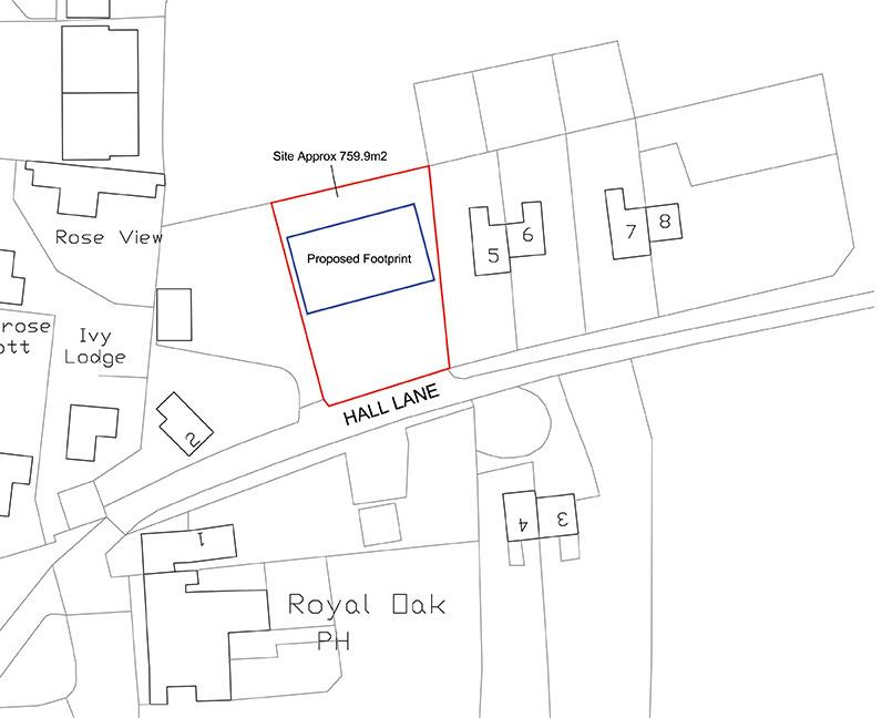 A roughly rectangular shaped plot (approximately 0.18 acres) with road frontage.
