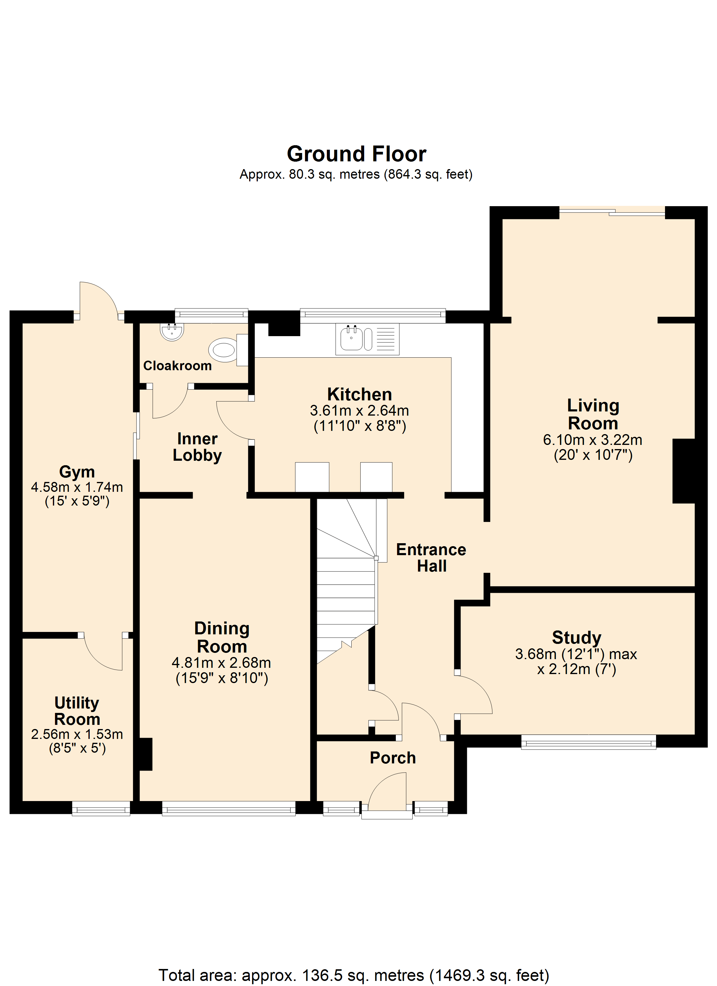 Cloakroom: Low level WC, wash hand basin with tiled splashback, tiled floor, wall mounted gas boiler and double glazed window to rear aspect.