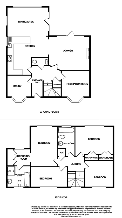 Ensuite 8' 6" x 7' 8" (2.59m x 2.34m) Window to front, shower cubicle, bath with mixer tap and shower attachment, concealed cistern W.C, hand wash basin inset to vanity unit, radiator, part tiled walls, extractor fan.