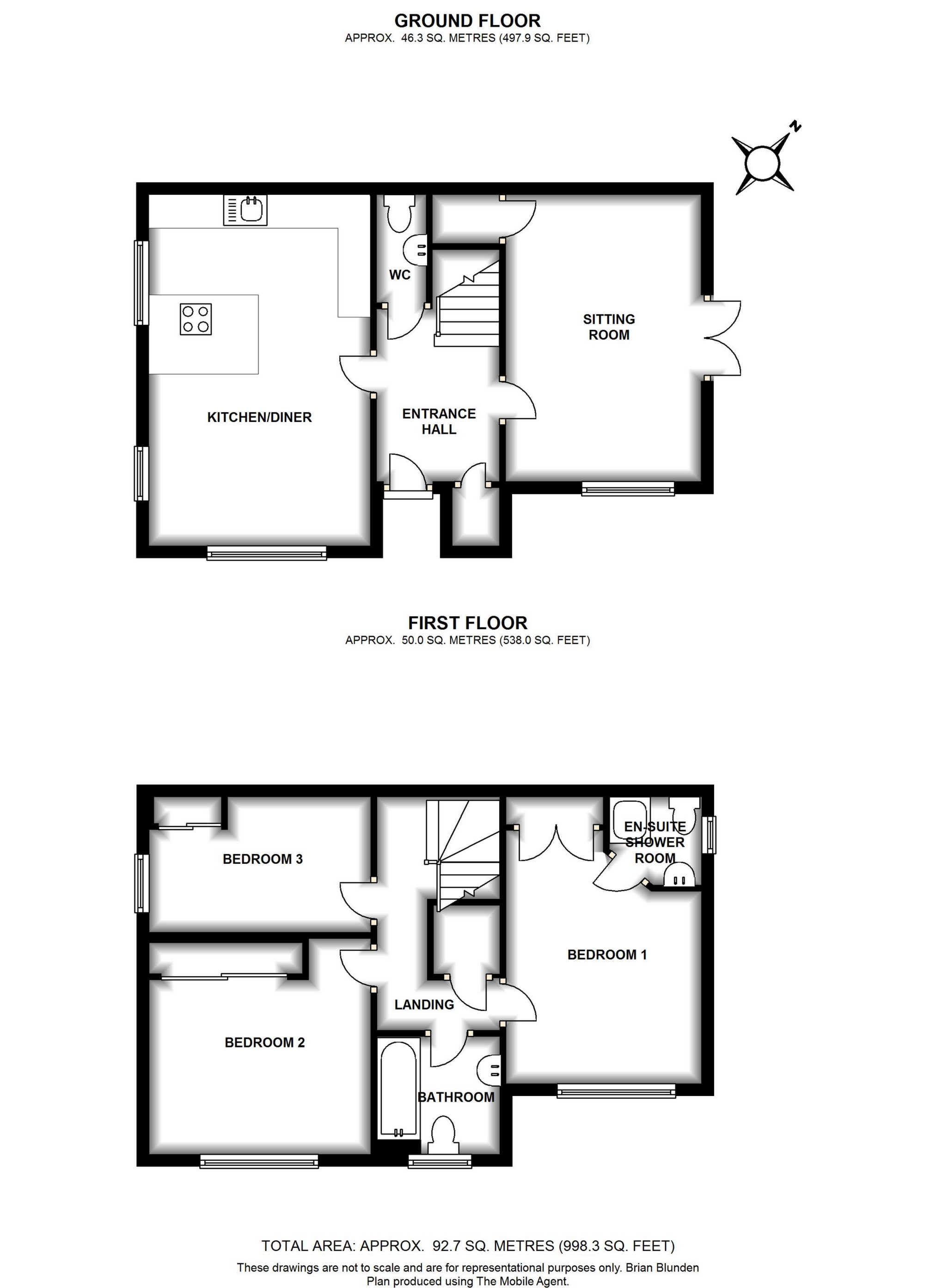 The first floor provides access to the boarded loft space and has doors to all further rooms as well as the airing cupboard. The Master bedroom can comfortably hold a double bed, free standing furniture and benefits from double fronted built in wardrobes which give hanging and shelving space. A door leads into the en-suite shower room which comprises of shower cubicle, wash hand basin, low level WC and window. Bedroom two is located at the front of the property and is also a double bedroom with the added benefit of a triple built in wardrobe providing much needed hanging and shelving space. Bedroom three is a good sized single room with a double built in wardrobe, again providing plenty of storage space. The family bathroom is fitted with a three piece white suite and has a shower over the bath and a window.