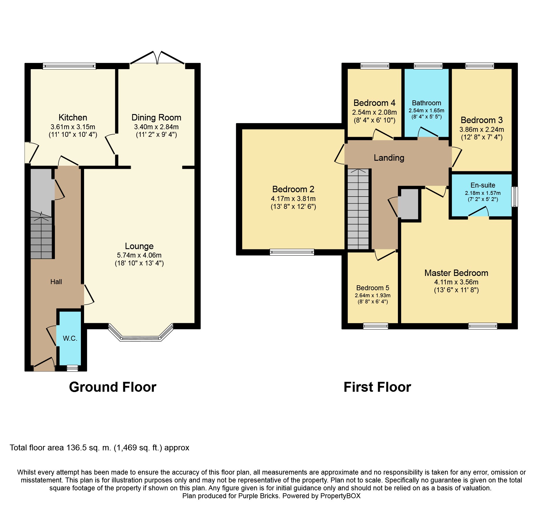 Property briefly comprises of large hallway, open plan lounge/dining room, downstairs cloakroom, kitchen, five bedrooms, master en-suite and a family bathroom.