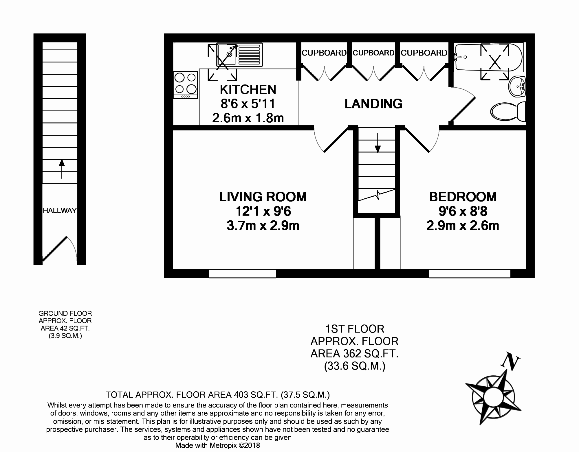 kitchen 8' 6" x 5' 11" (2.59m x 1.8m)