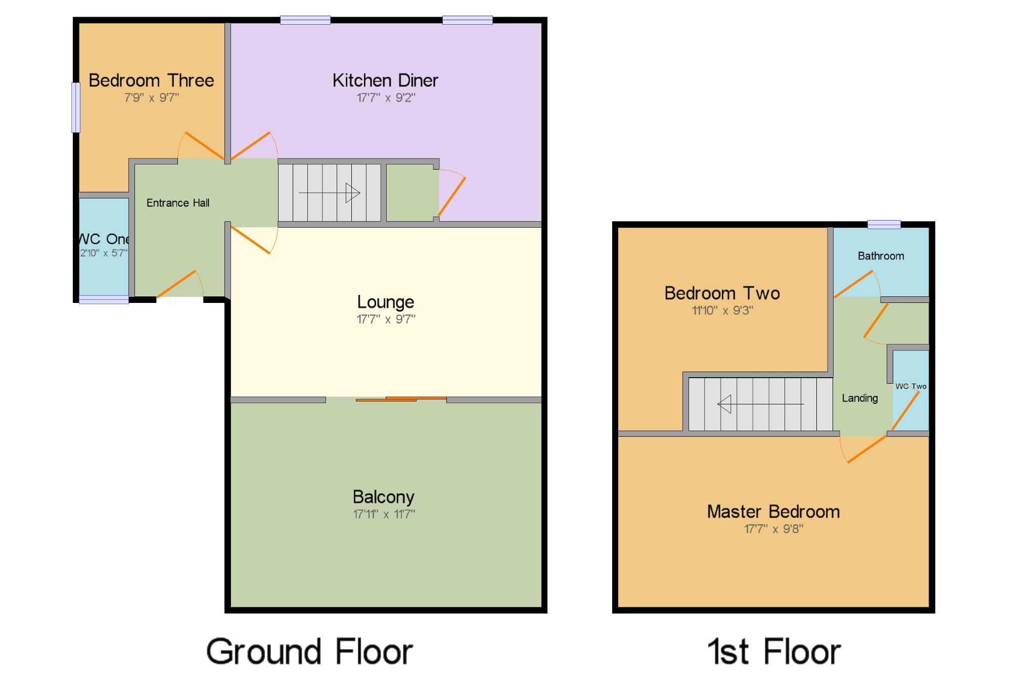 Master Bedroom17'7" x 9'8" (5.36m x 2.95m). Double glazed uPVC window facing the front.