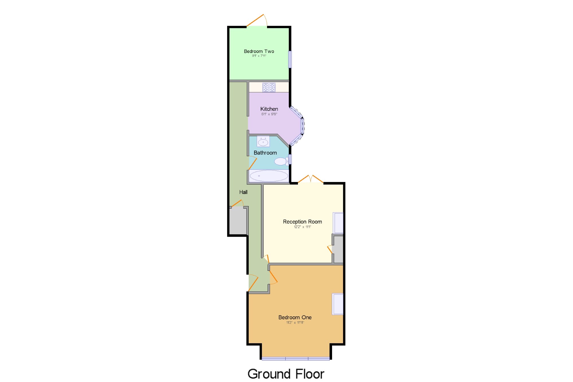 Bedroom One11'2" x 11'11" (3.4m x 3.63m). Single glazed sash window facing the front overlooking the garden. Radiator, laminate flooring.
