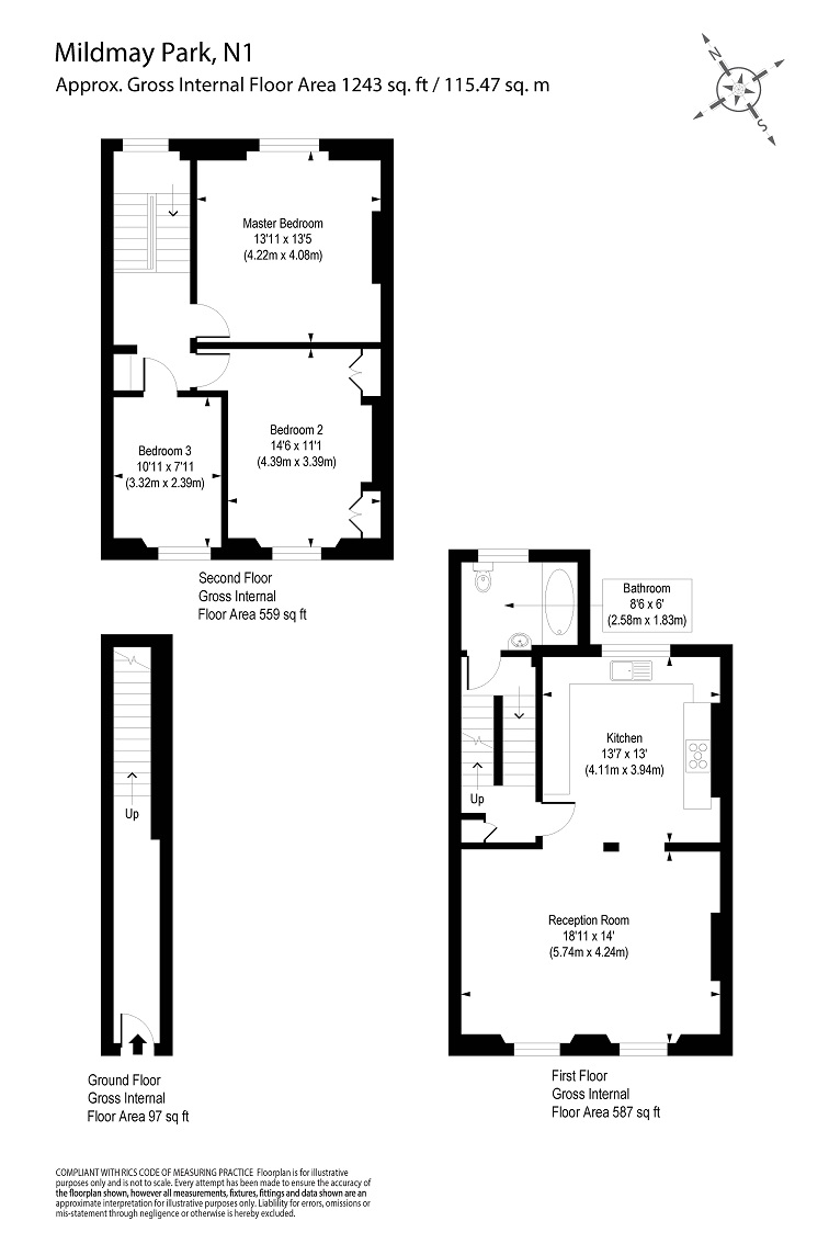A beautiful, modern three bedroom maisonette that has been finished to an excellent standard. Standing at over 1200 sqft this contemporary property boasts its own private entrance; the first floor features a delightful open-plan kitchen and reception room with open brickwork and a homely feel, plus modern bathroom, with three good sized double bedrooms on the second floor.