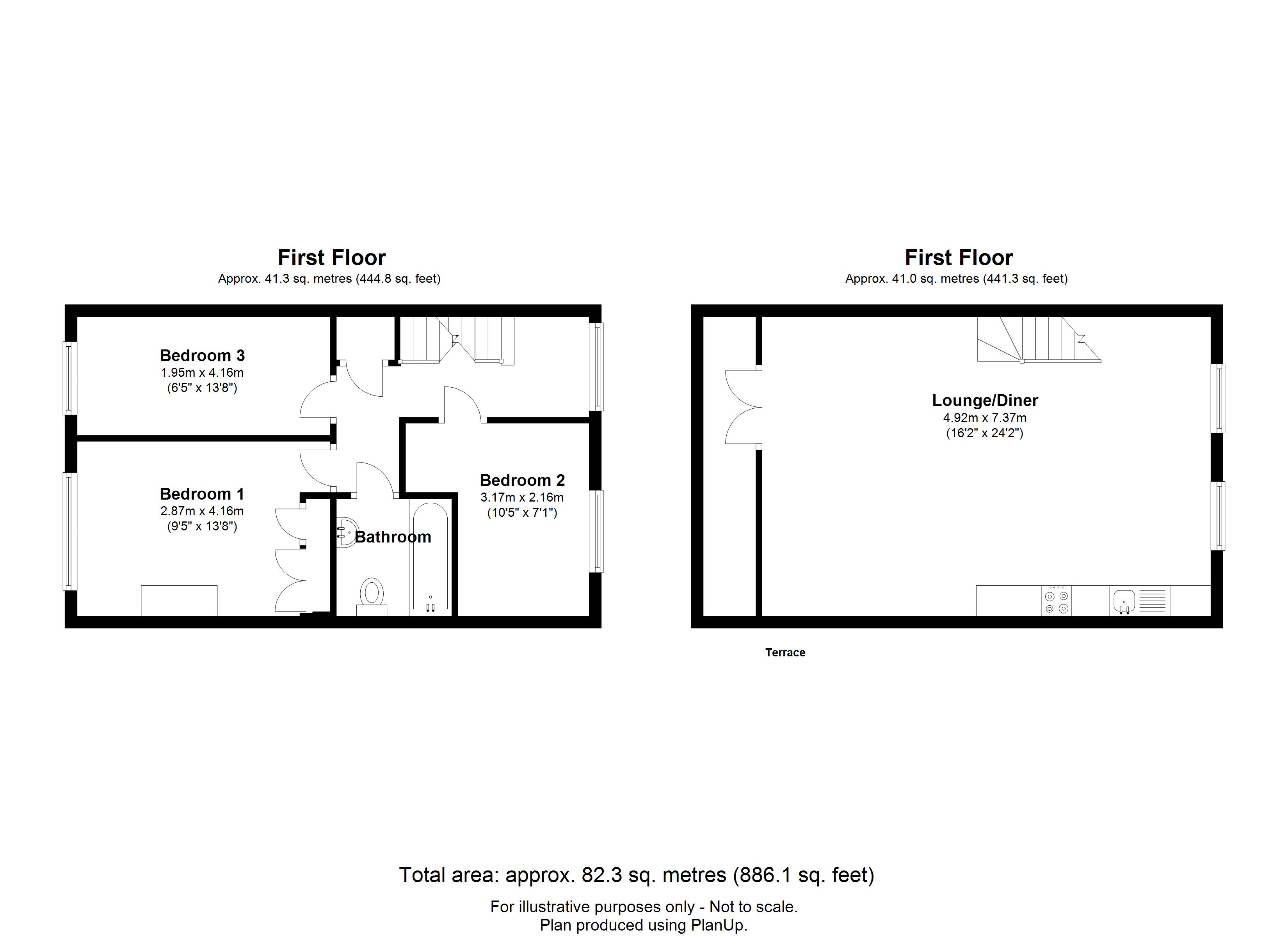 Living space is arranged over two floors and comprises three bedrooms and a family bathroom on the first floor.