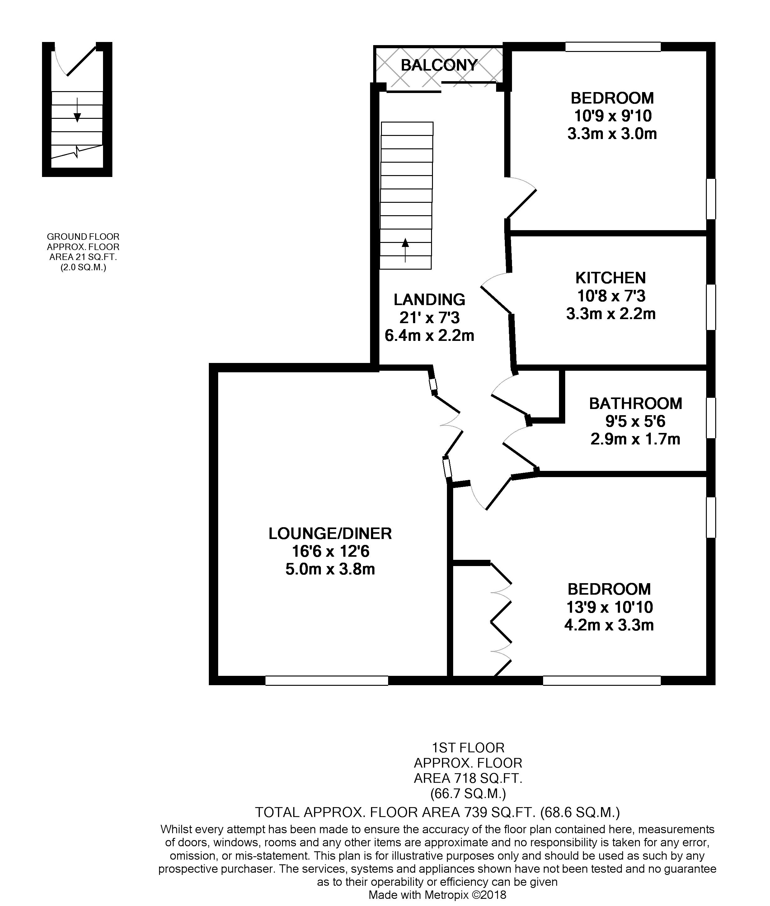 A beautifully presented two bedroom first floor maisonette offered with no onward chain. The property benefits from a bright landing hall that has access to; the modern fitted kitchen, french doors onto the reception/dining room, patio doors onto a private balcony, master bedroom with dual aspect windows and fitted wardrobes, second bedroom again with dual aspect and a modern fitted bathroom with three piece suite. Further benefits include gas central heating, loft space, well maintained communal grounds, off street parking and the property is double glazed. Viewing highly recommended. EPC Rating D