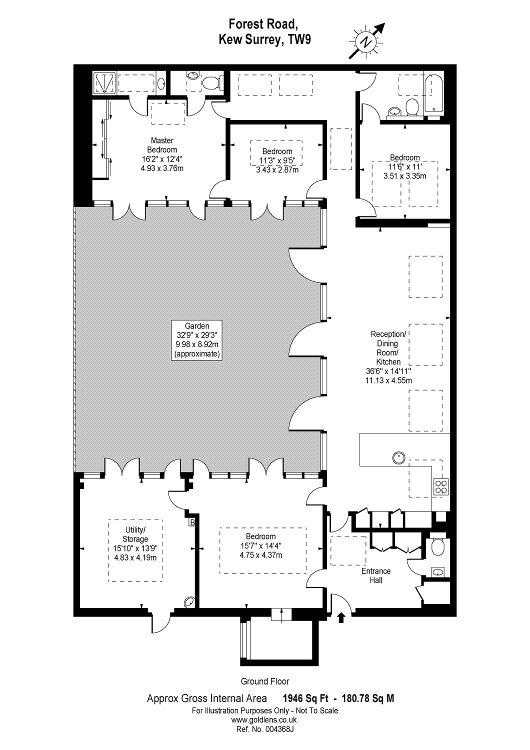 This wonderfully bespoke & contemporary property has been fitted to an extremely high standard and is ideal for a corporate tenant. It comprises; wide entrance hall with storage, bright & airy open-plan reception room with modern fitted kitchen, master bedroom with en-suite, 2 further double bedrooms, single bedroom, family bathroom & large storage/utility/study room.