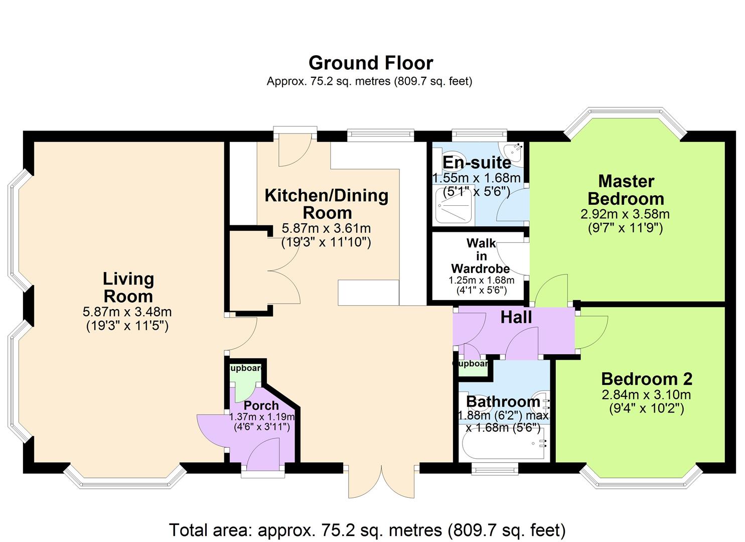 Double glazed bay window to front, built in wardrobe and units, ceiling light point, skirting, coving, laminate flooring, spotlight.