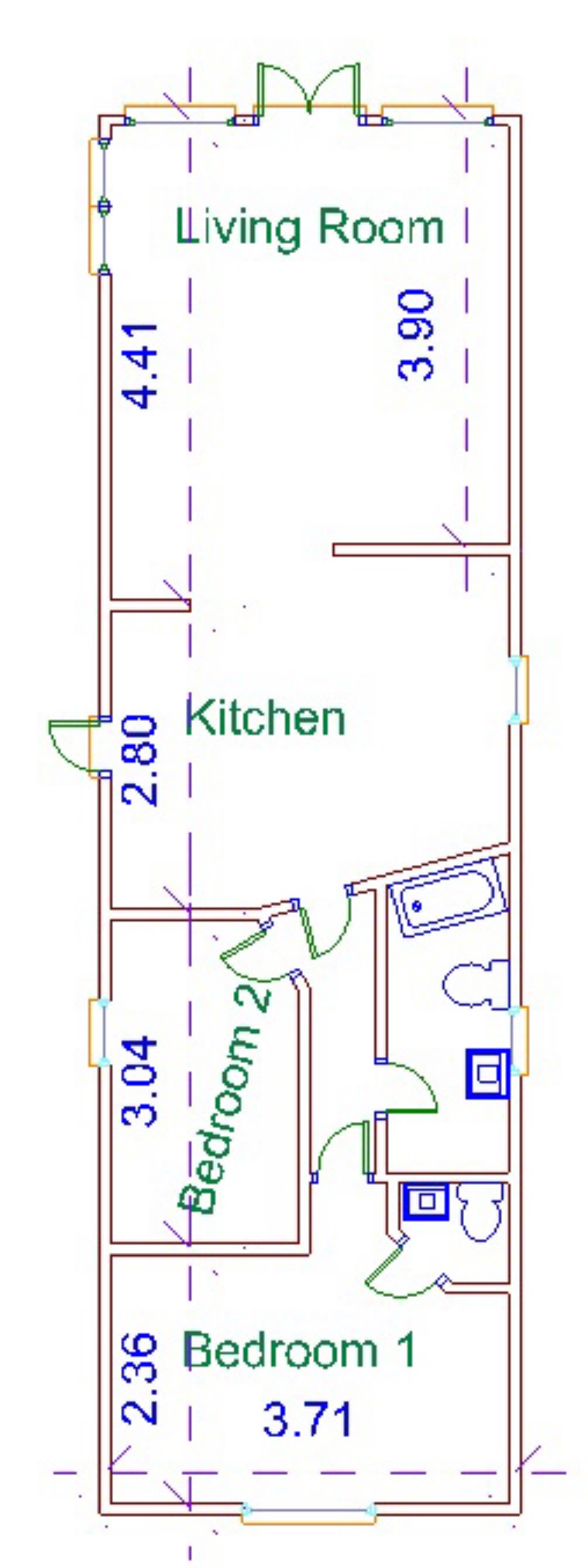 Doors opening to both bedrooms and bathroom.