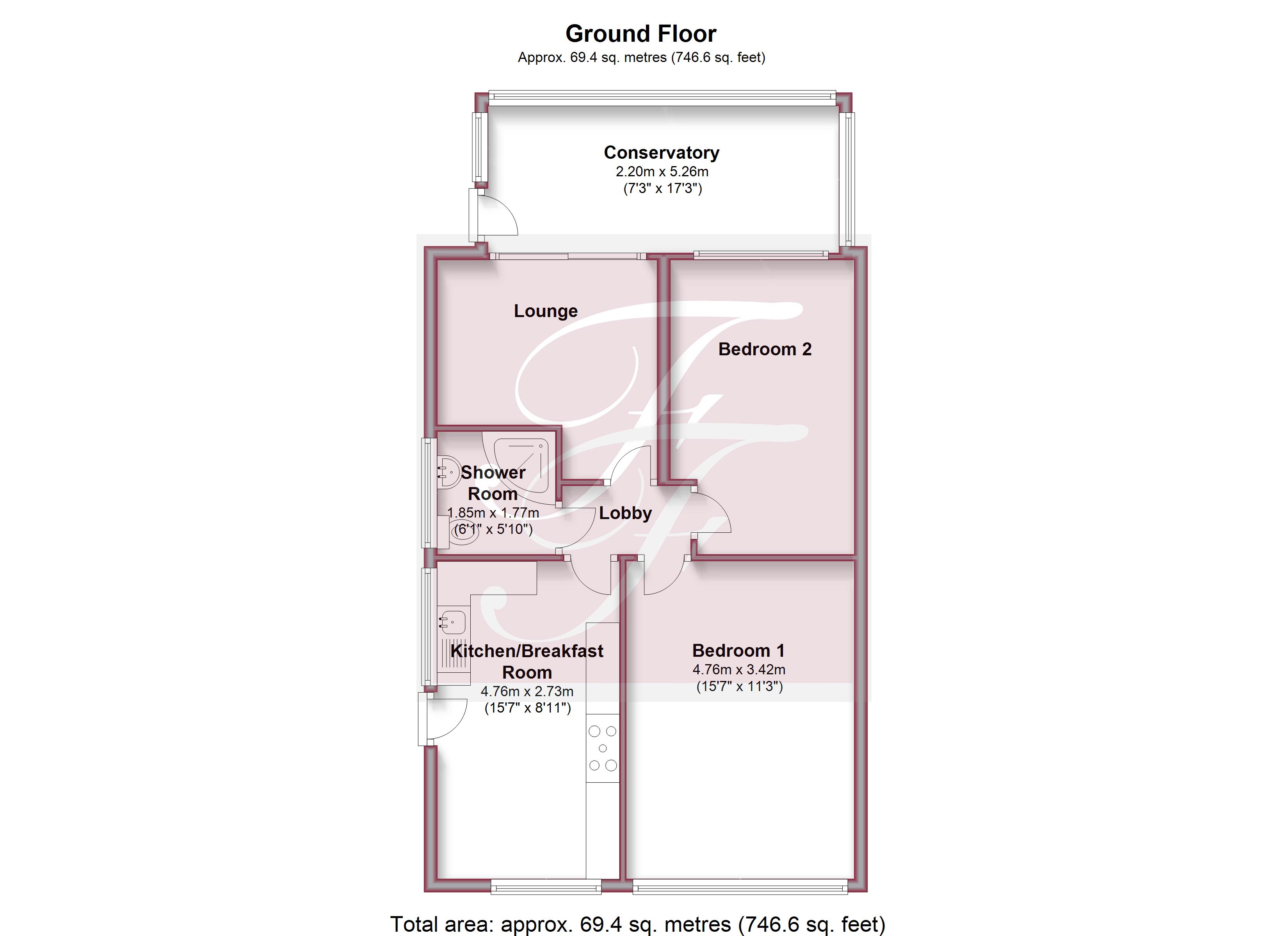 1.85m x 1.65m (6ft 0” x 5ft 4”)