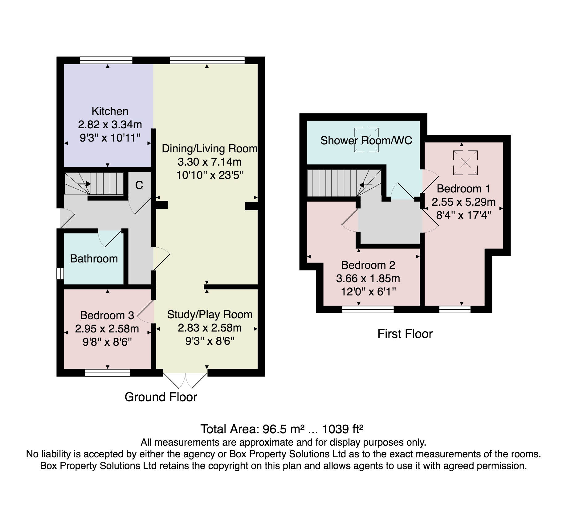 Study/ playroom (9'3 x 8'6) With double-glazed double French doors leading to the enclosed rear terrace and garden. Central heating radiator.