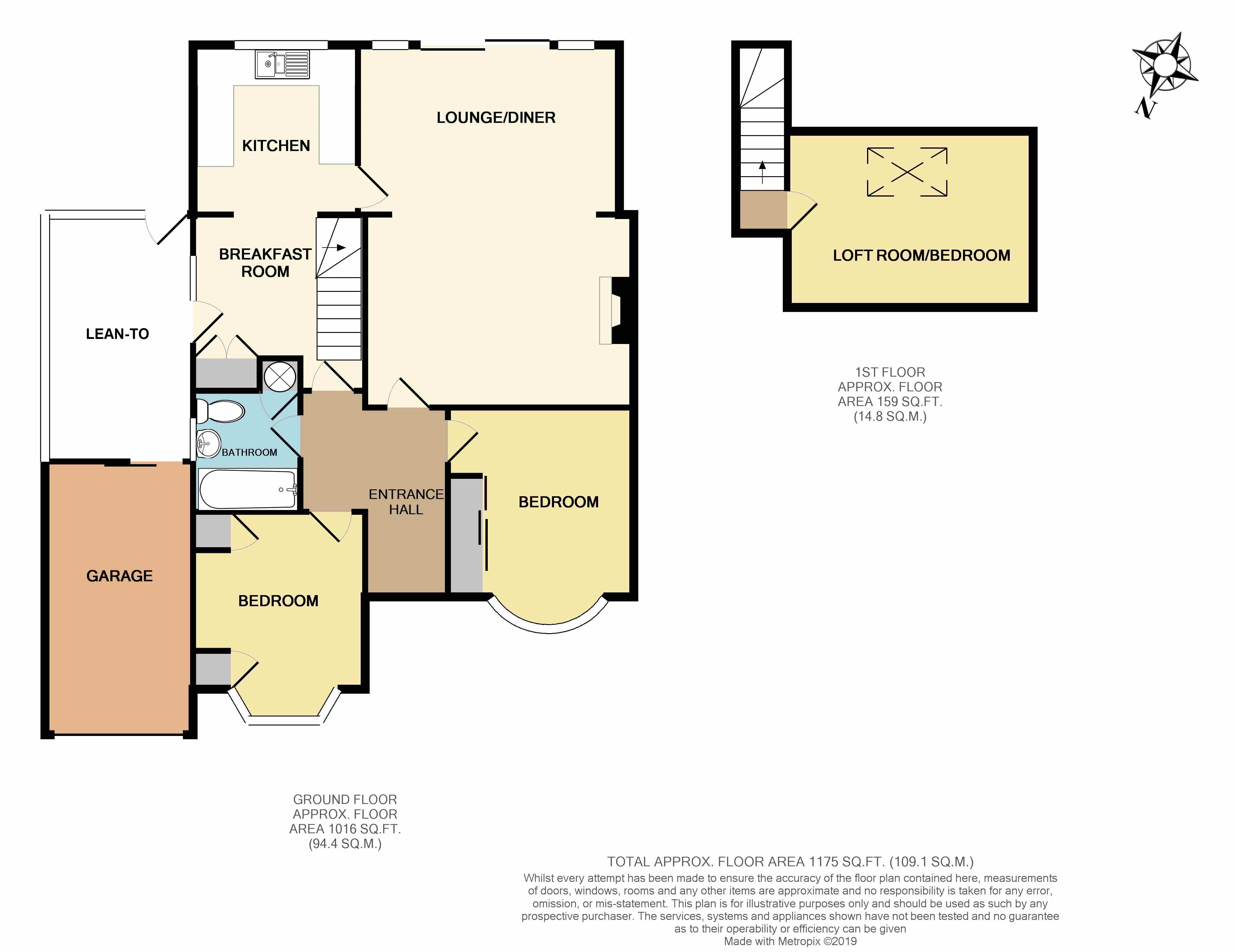 Kitchen/breakfast room 17' 8" x 9' 0" (5.38m x 2.74m) Range of matching wall and base units with worktops over, one and a half bowl stainless steel sink with mixer tap, freestanding cooker, fridge/freezer, plumbing for washing machine, double glazed window to rear, double glazed door and window to lean-to, storage cupboard, vinyl flooring, radiator.