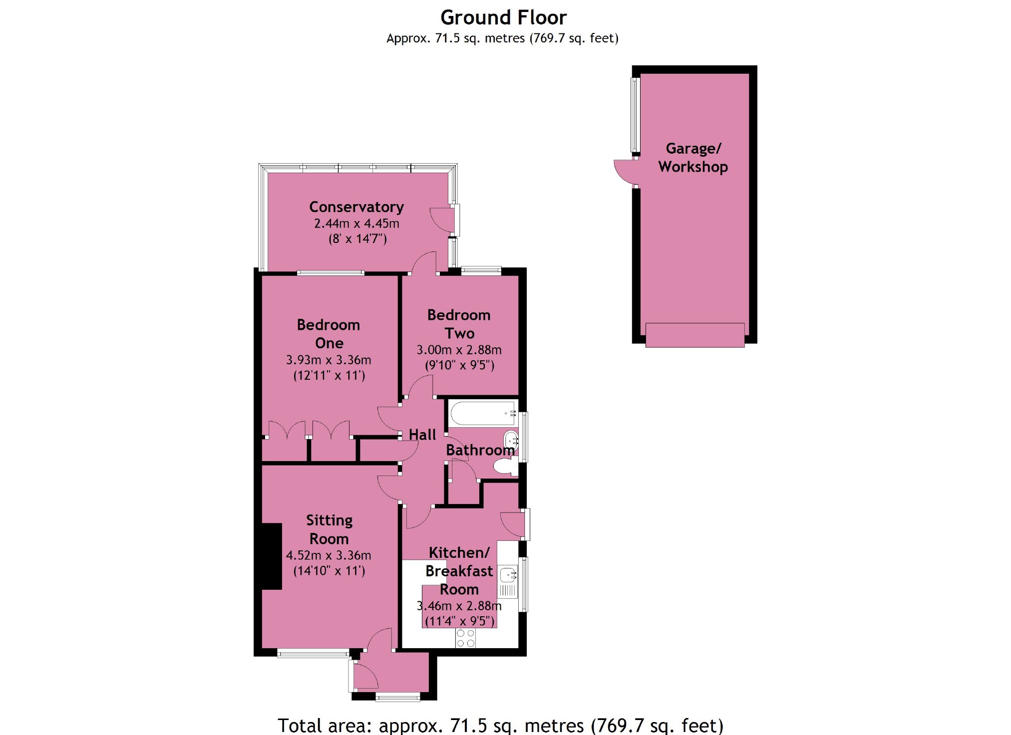 A semi detached bungalow presented in good decorative order providing sitting room, kitchen/breakfast room, two double bedrooms with a large conservatory to the rear together with family bathroom. Low maintenance frontage, private rear garden, large garage with workshop. No chain.