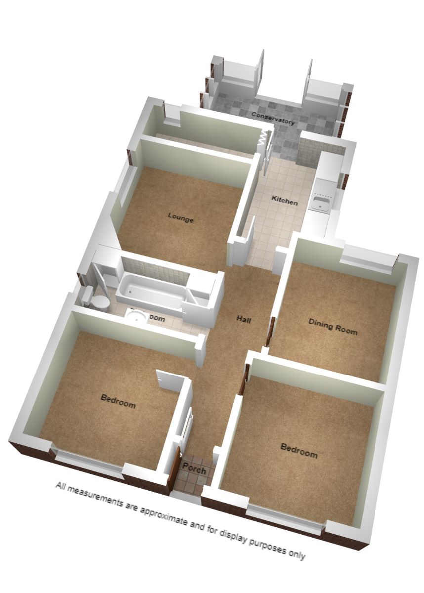 The property comprises, Entrance Hall, Lounge, Kitchen, Conservatory, Three Bedrooms (or one can be used as a Dining Room), Garage, Summer House, attractive & easily maintained rear garden. Brand New Carpets and decoration.