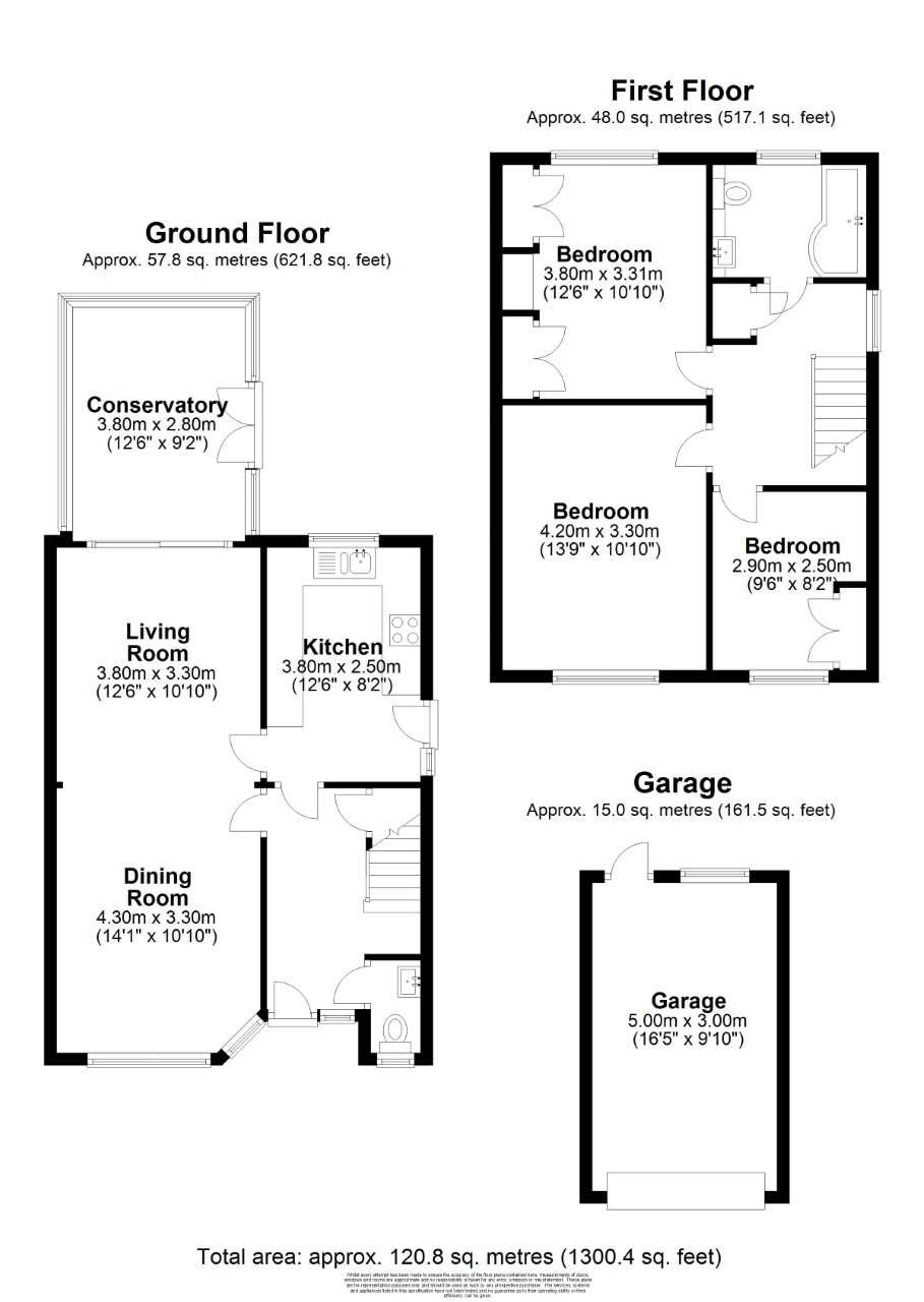 Conservatory: Electric heater, light and power, tiled floor, double glazed windows, double glazed double doors to garden