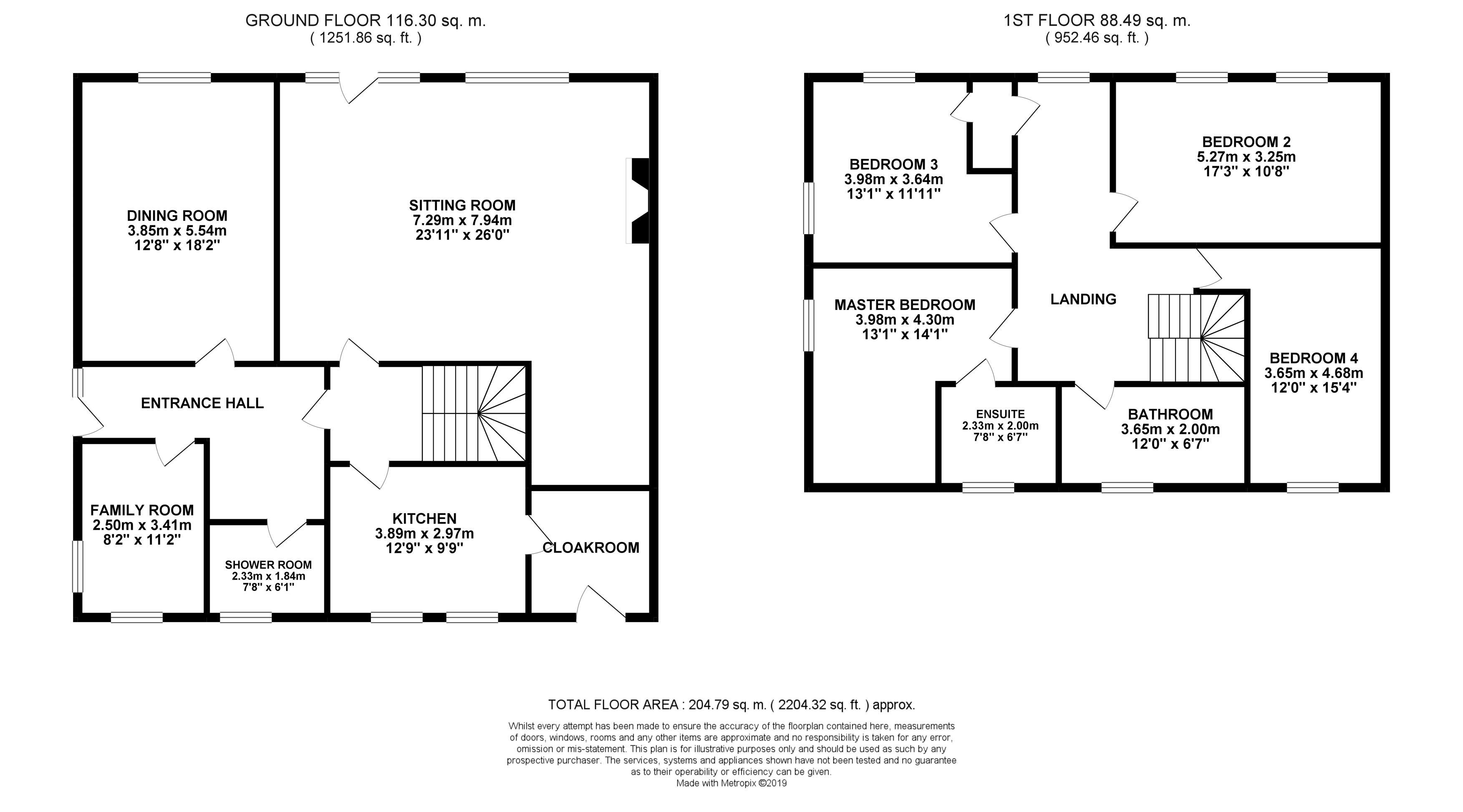 The first floor offers landing with access to master bedroom with en suite bathroom, three further bedrooms and family bathroom.