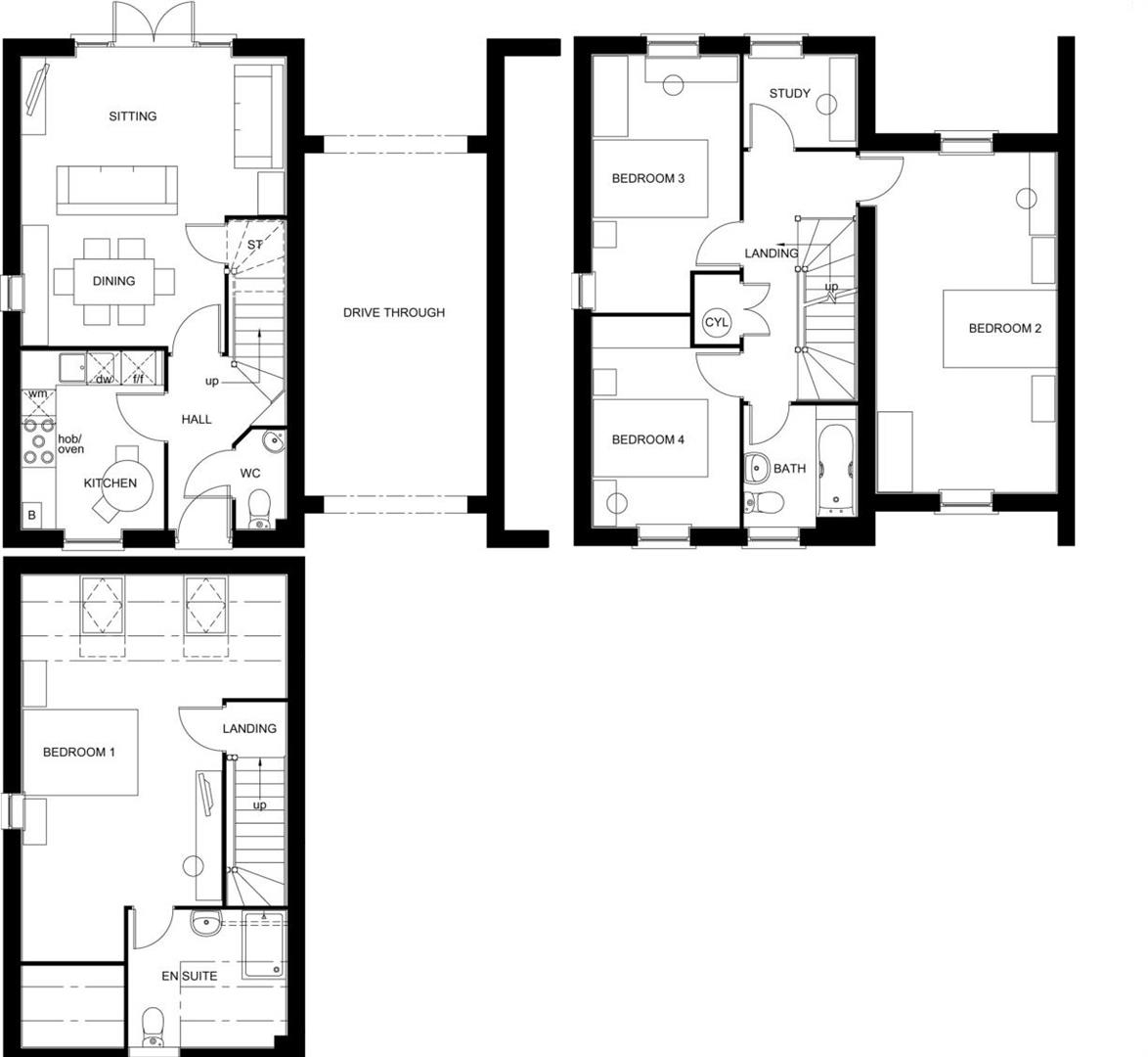 This stunning newly built property from David Wilson Homes is a spacious four bedroom family home spread over three floors. The open-plan sitting room and dining area are flooded with natural light thanks to the French doors that lead to the garden, whilst the separate kitchen is located at the front of the house. On the first floor there are three large double bedrooms, a study and a family bathroom. The light and airy master bedroom is located on the second floor along with an en suite shower room.
