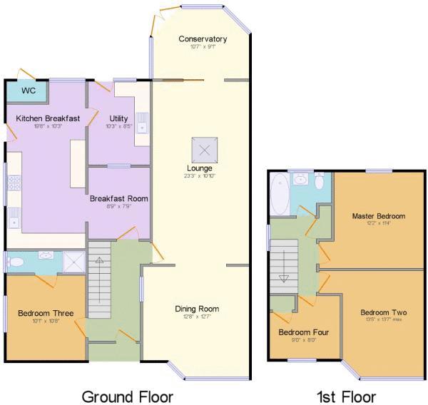 On the first floor are three bedrooms, two doubles and a single. The master has an extensive range of fitted wardrobes. The family bathroom is fitted with a panelled bath and shower attachment, close coupled WC and pedestal wash basin. The landing has access to the loft space which is partly boarded and the airing cupboard.