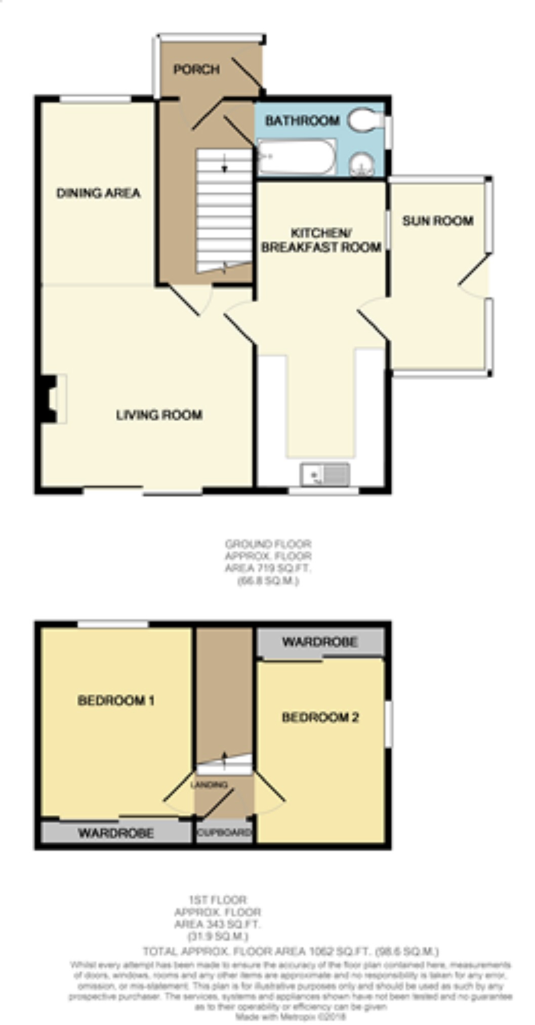 The interior comprises of a sun room, a modern breakfasting kitchen with appliances, a large living room with a multi-fuel stove, a dining area which could be separated to create a third bedroom and a generous conservatory. There is a bathroom on the ground floor and two double bedrooms on the first floor with built-in wardrobes. Good sized gardens to the front and rear of the house.