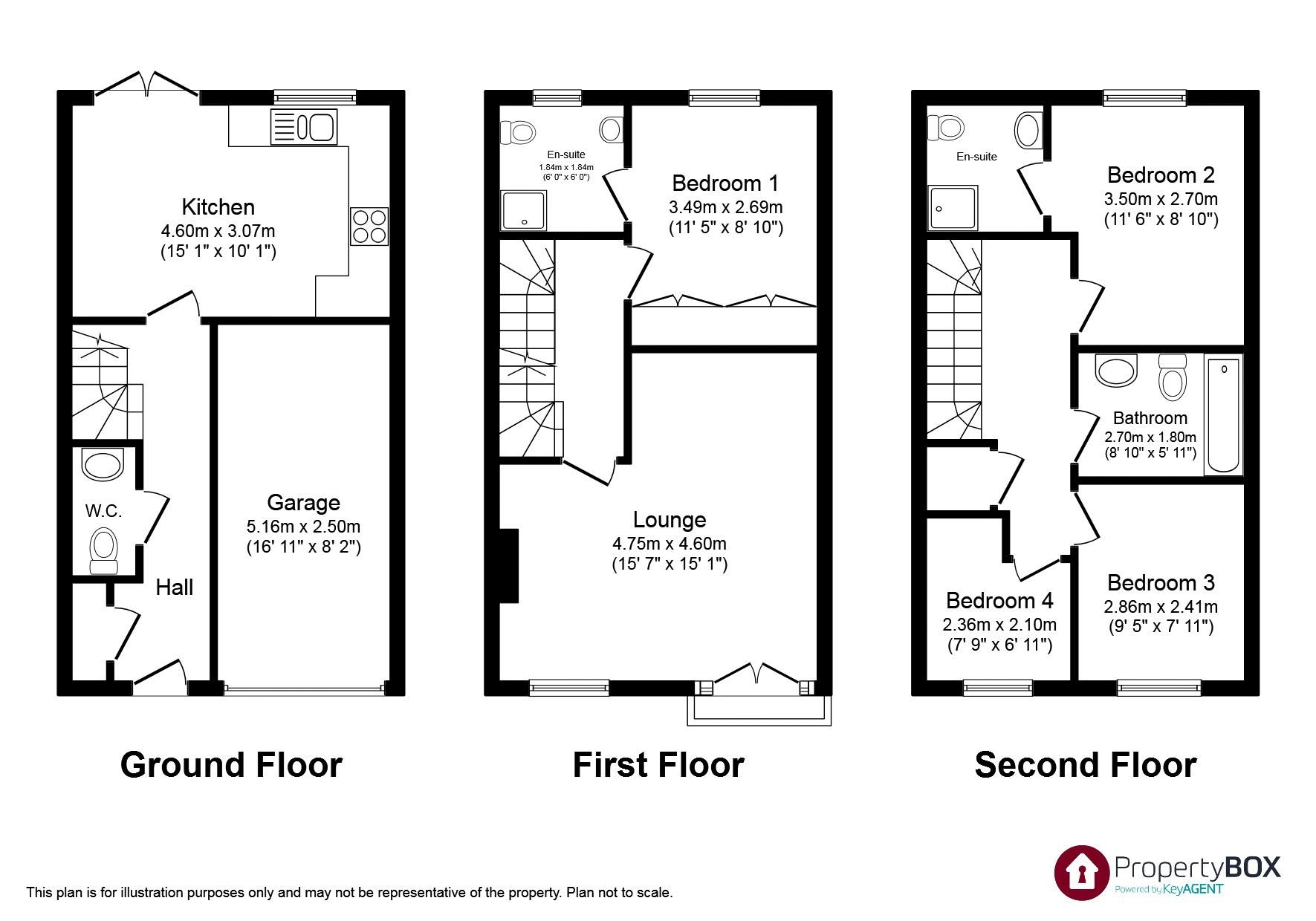 Second floor: A double ensuite bedroom, two further bedrooms and a family bathroom.