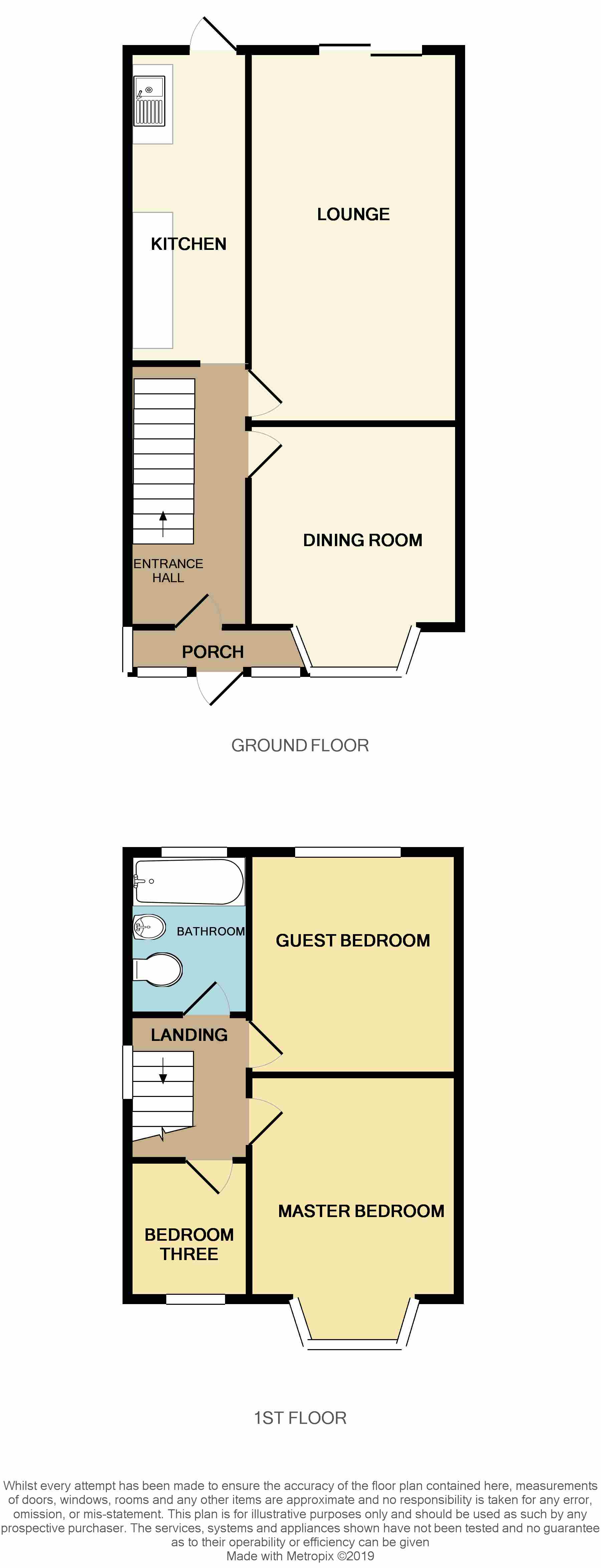 Bathroom 7' 10" x 5' 2" (2.4m x 1.6m) Suite comprising of a panelled bath with shower over, sink & W.C. Double glazed window to rear elevation and central heating radiator.