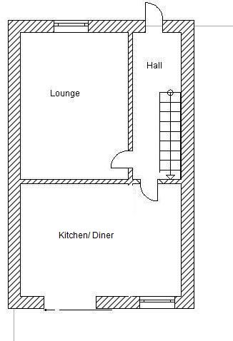 With a solid wooden floor, central heating radiator, a ceiling light point, a newly carpeted staircase leading to the first floor accommodation and doors leading off to: