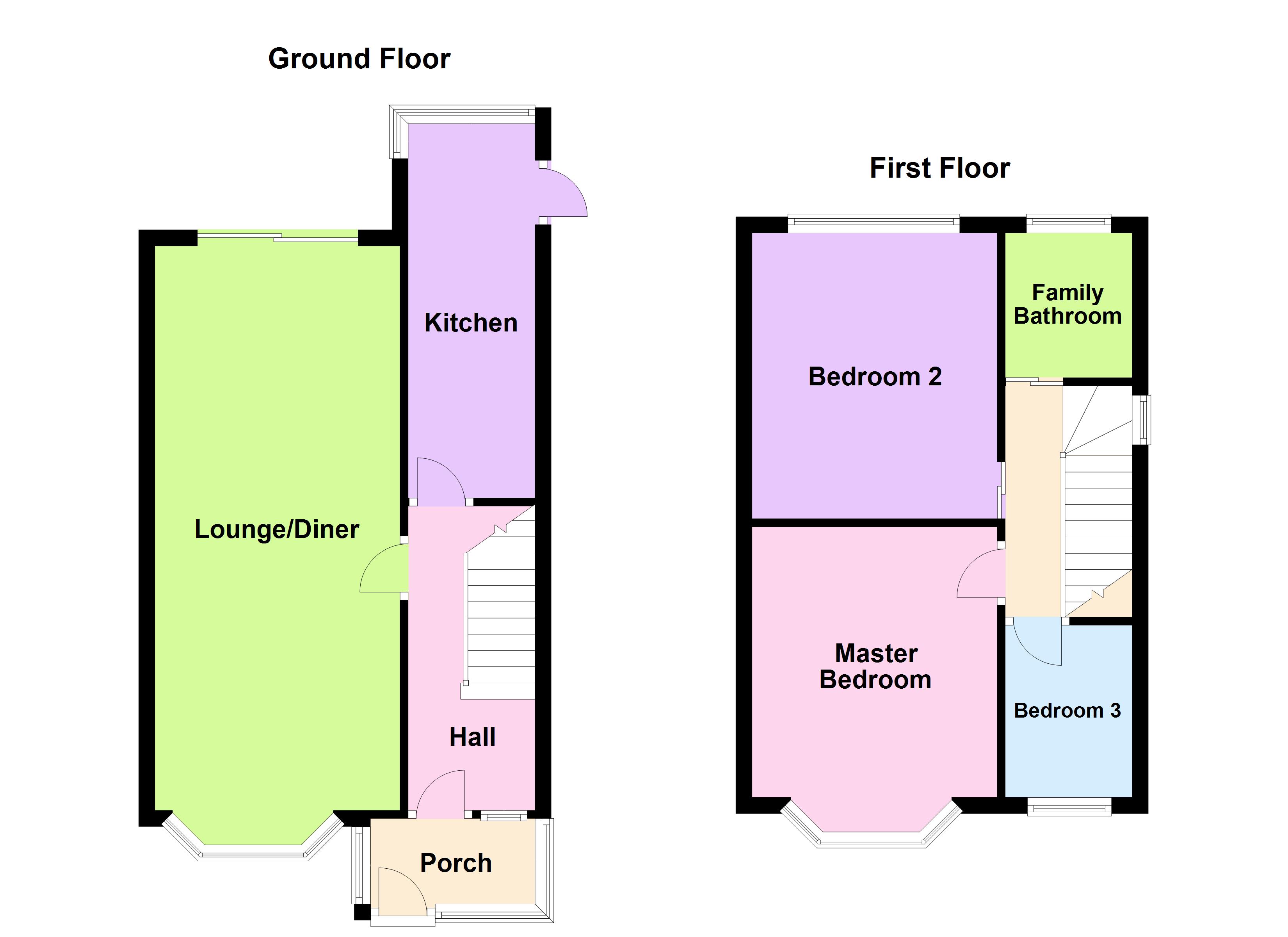 Entrance hall having reception door, ceiling light, central heating radiator, stairs off to first floor accommodation, doors off to lounge/diner and kitchen.