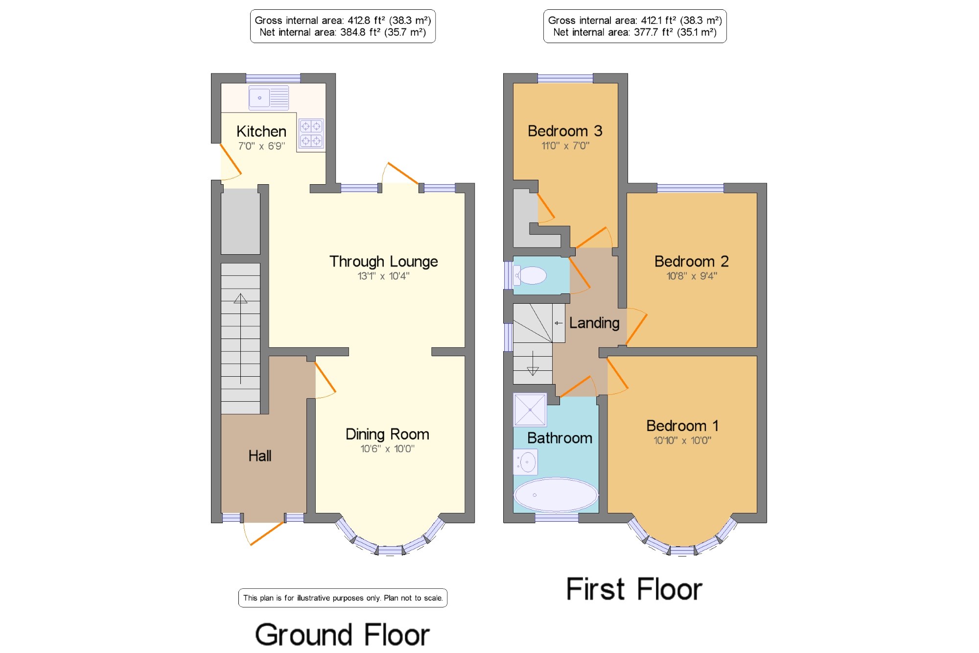 Bedroom 110'10" x 10' (3.3m x 3.05m).