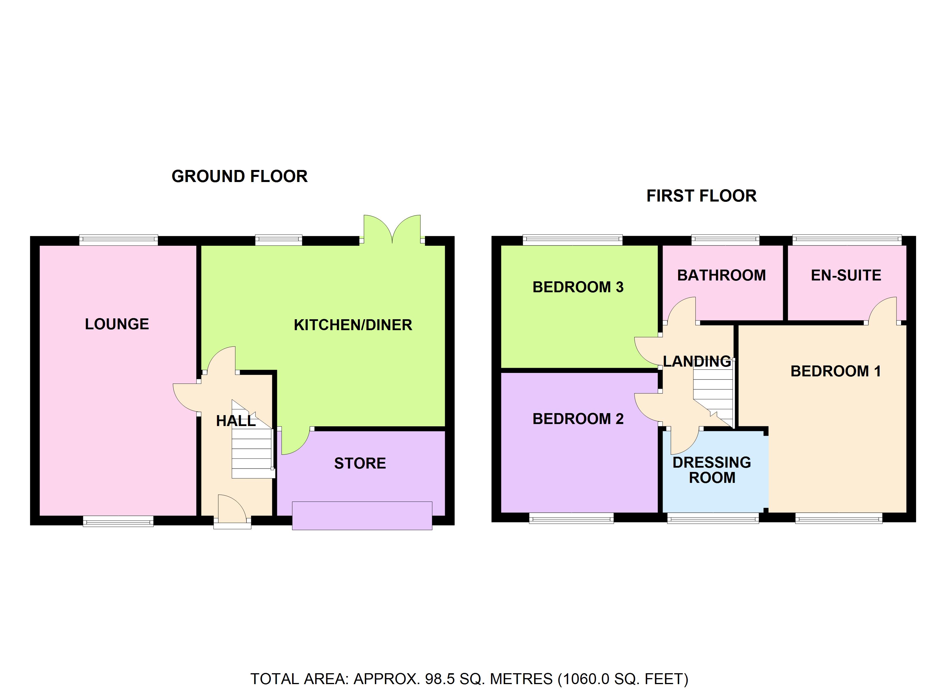 Bedroom two 10' 9 max" x 9' 5 max" (3.28m x 2.87m) Having double glazed window to rear elevation and central heating radiator.
