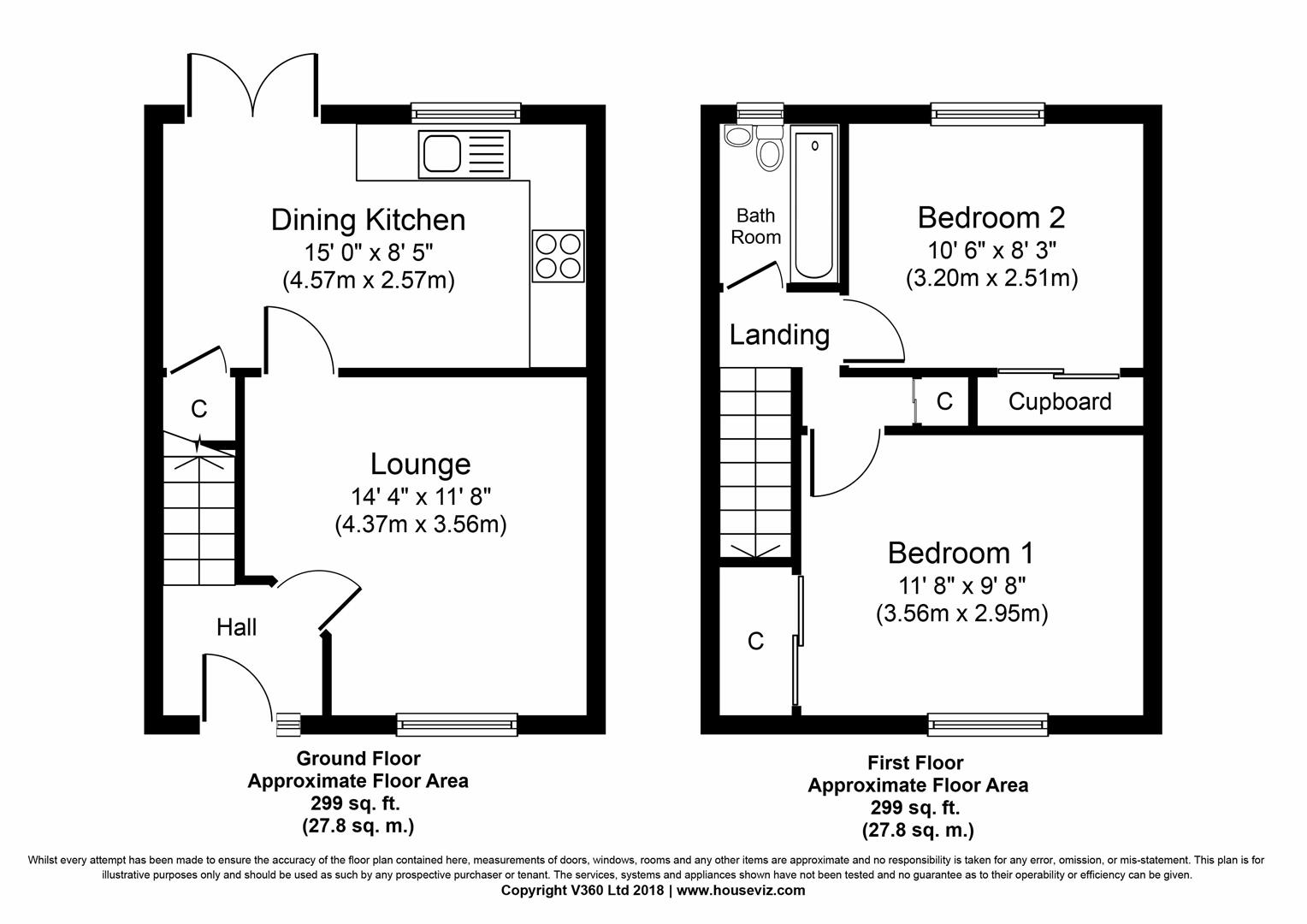 Front garden is laid to lawn with flower borders around. The fully enclosed rear garden is monoblocked with a small lawn and garden hut. Ample adjacent parking.