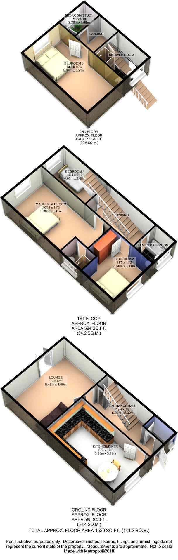 To the first floor there is the amazing Master suite with 17ft master bedroom and en-suite shower room. There are also built in wardrobes to this bedroom. Further down the landing there is the second double bedroom which also has built in double wardrobes as well as the modern and spacious family bathroom. The staircase then leads to the second floor accommodation