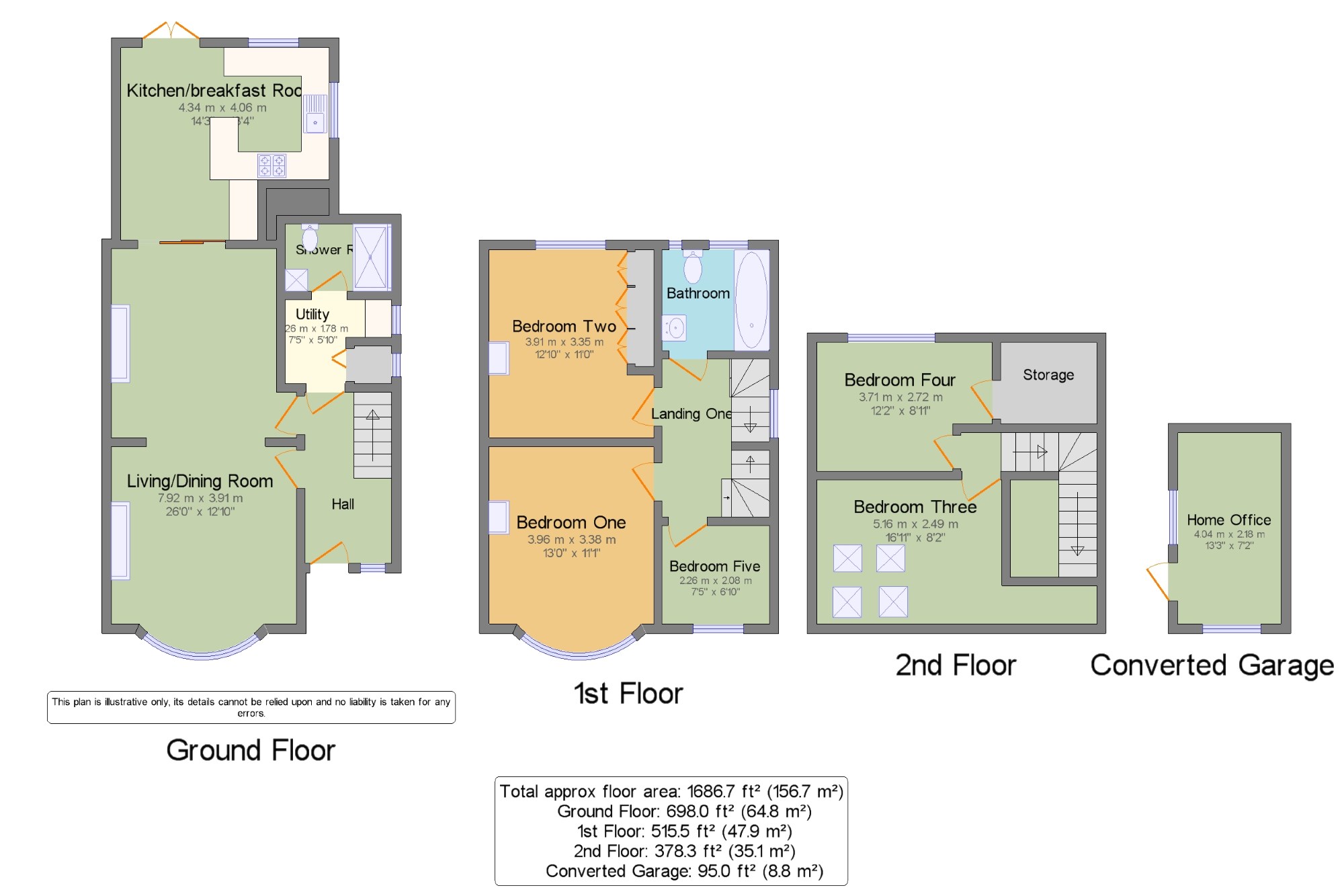 King & chasemore are delighted to offer for sale this extended five bedroom semi-detached family home, situated in Wilmington Way, in the popular area of Patcham, in the North side of Brighton. The house has been extended by the current owners, and offers versatile and adaptable living accommodation, and comprises as follows: Entrance hall, 26' living room/dining room area, 14' kitchen/breakfast room, 7' separate utility room, and downstairs shower room/wc. On the first floor there are three bedrooms, and a family bathroom suite, whilst on the top floor are a further two good size double bedrooms. Outside to the front is a lawned front garden area, with pathway to the main entrance, shared driveway to the side, leading up to the garage, ( measuring 13'3 x 7'2), which has now been converted into a home office, ( currently used by the owner for teaching, but could be used for a variety of uses, i.E. Gym, homotherapy room, office etc...). To the rear is a South facing rear garden area, ( overall measurements 60' x 27'), comprising of a lower sun patio area, ideal for table and chairs etc., with steps leading up to an upper paved terrace area, also suitable for table and chairs, which then extends up onto a level lawned rear garden area, selection of flower and shrub borders, timber fenced surround.
