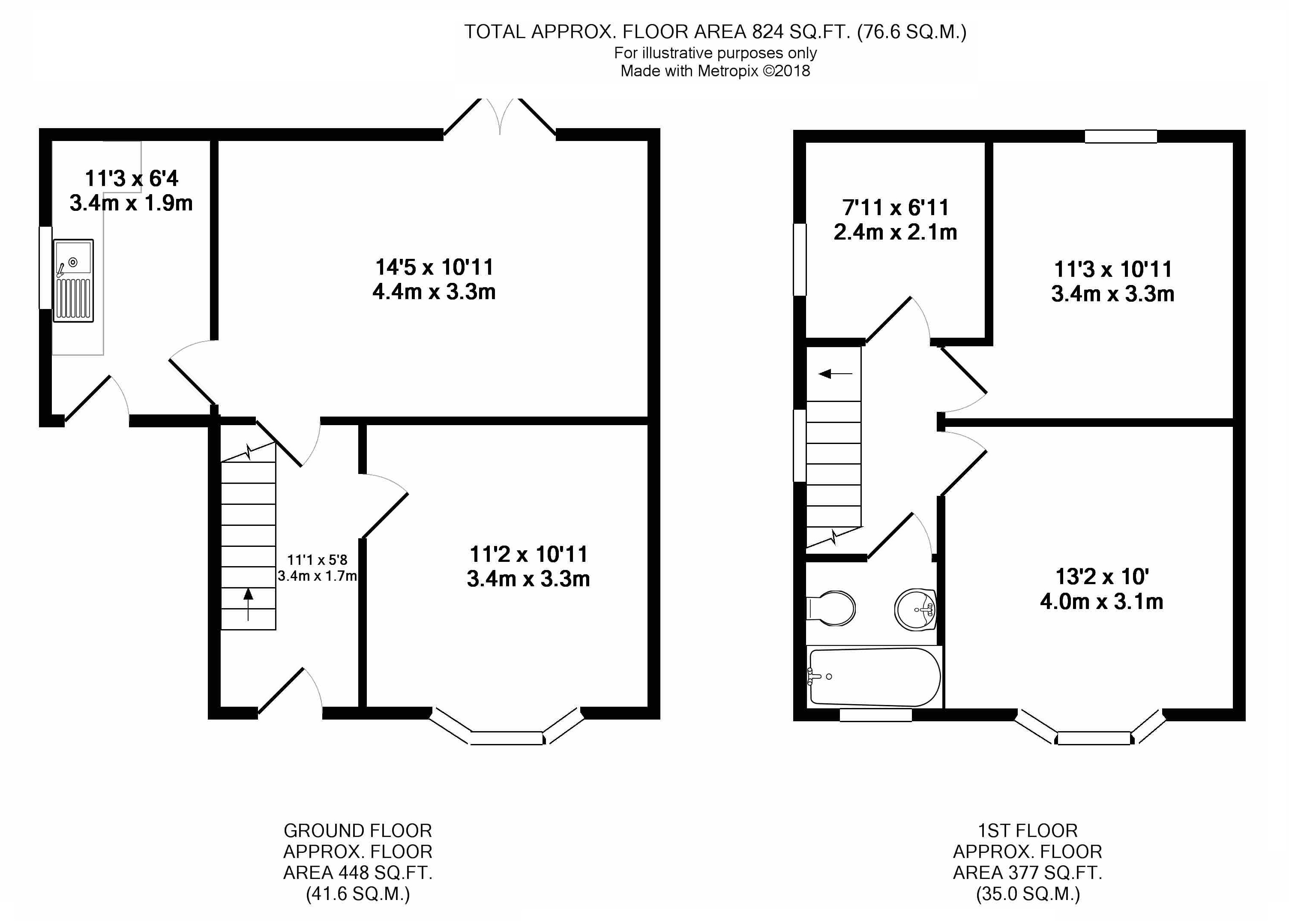 Double glazed window to rear, original feature fireplace with wood surround and radiator.