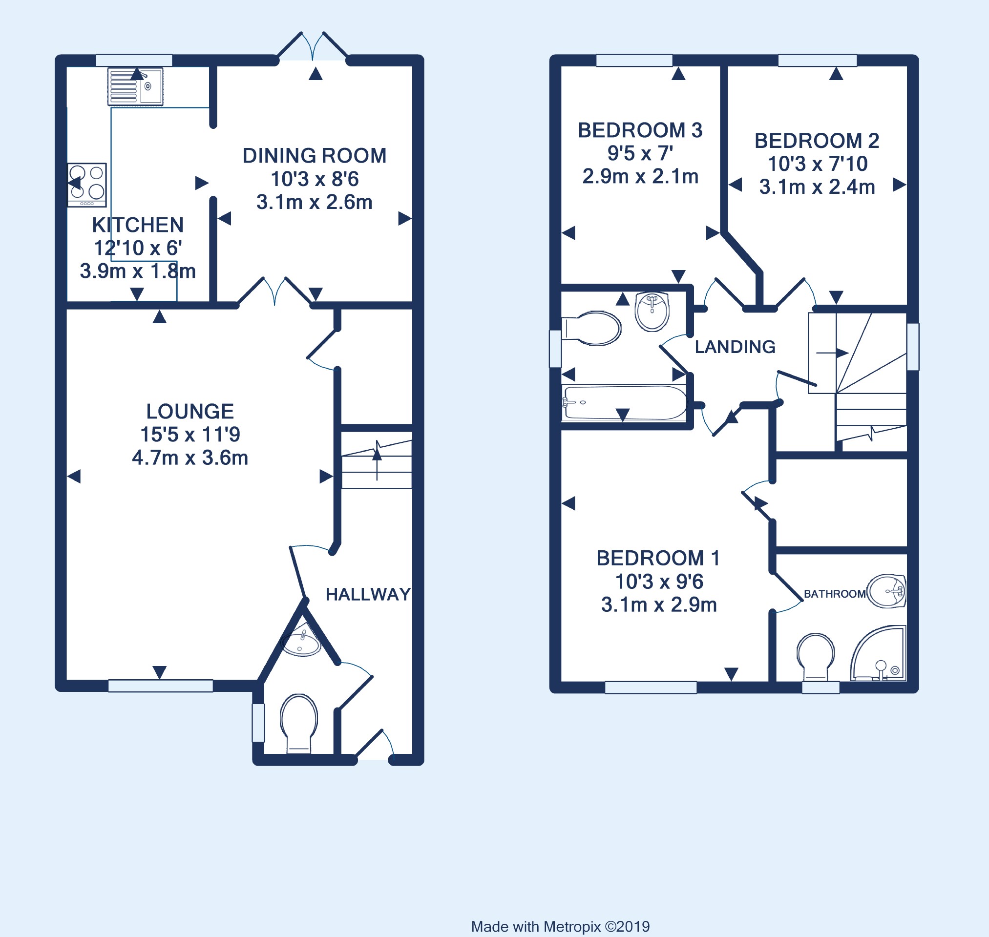 Upon entering you will find an entrance hall, cloakroom, lounge and a kitchen/dining room with french doors which open onto a private garden. To the first floor are 3 bedrooms (1 with an en suite) and a family bathroom.