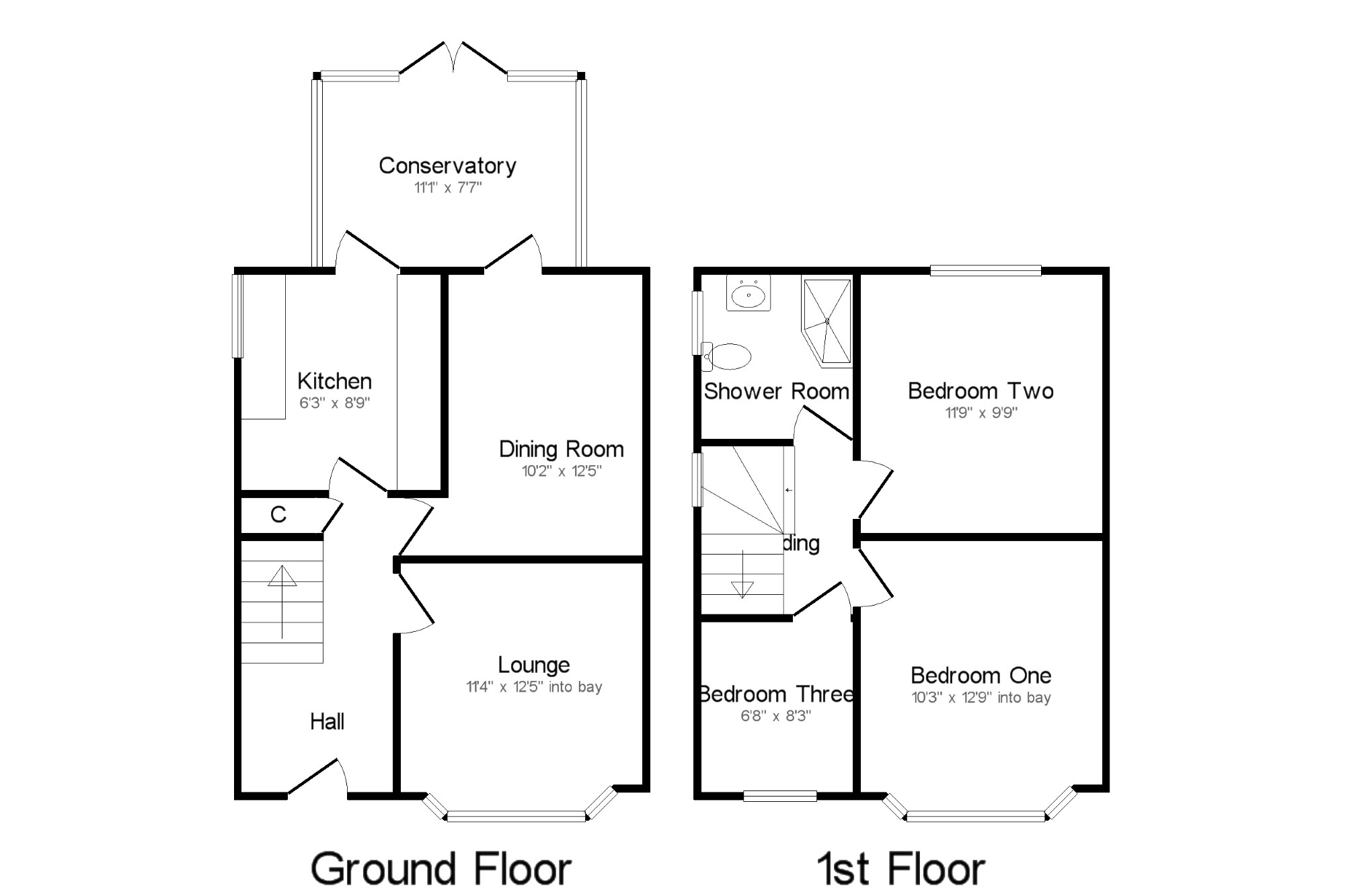 Bedroom One10'3" x 12'9" (3.12m x 3.89m). UPVC double glazed bay window to front, radiator.