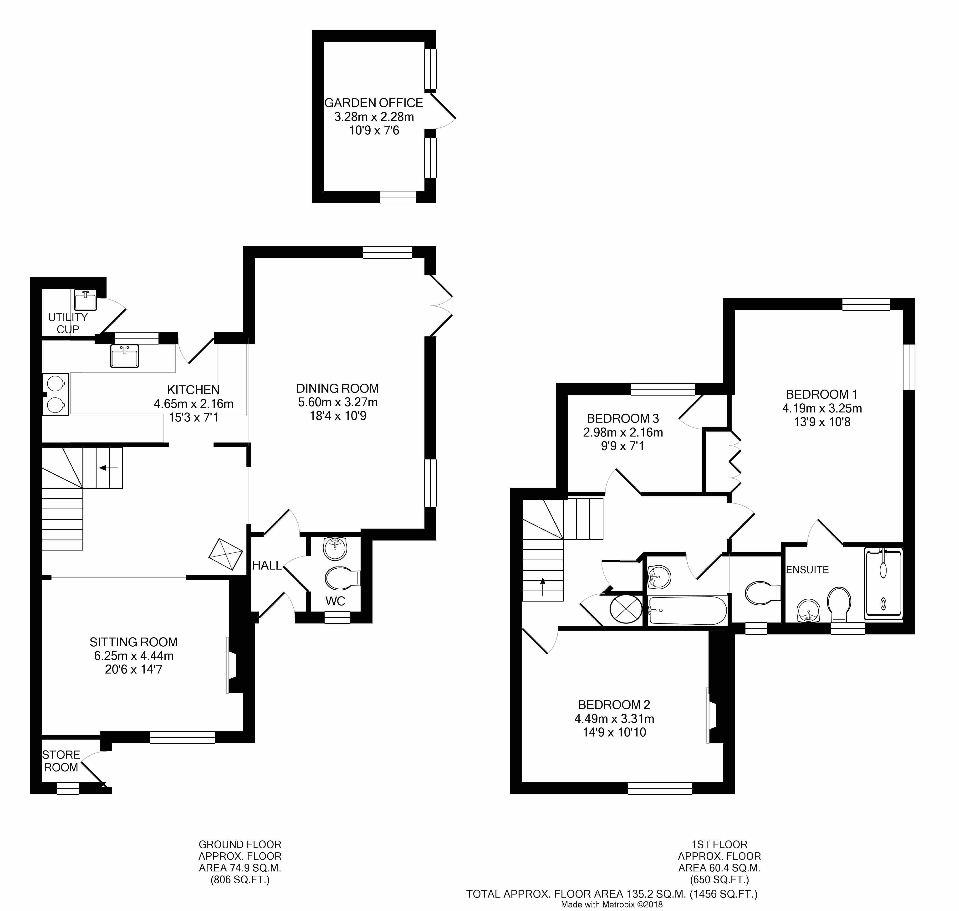 Recently constructed detached pine structure built in the garden with power and light. There are double glazed windows and double glazed French doors.