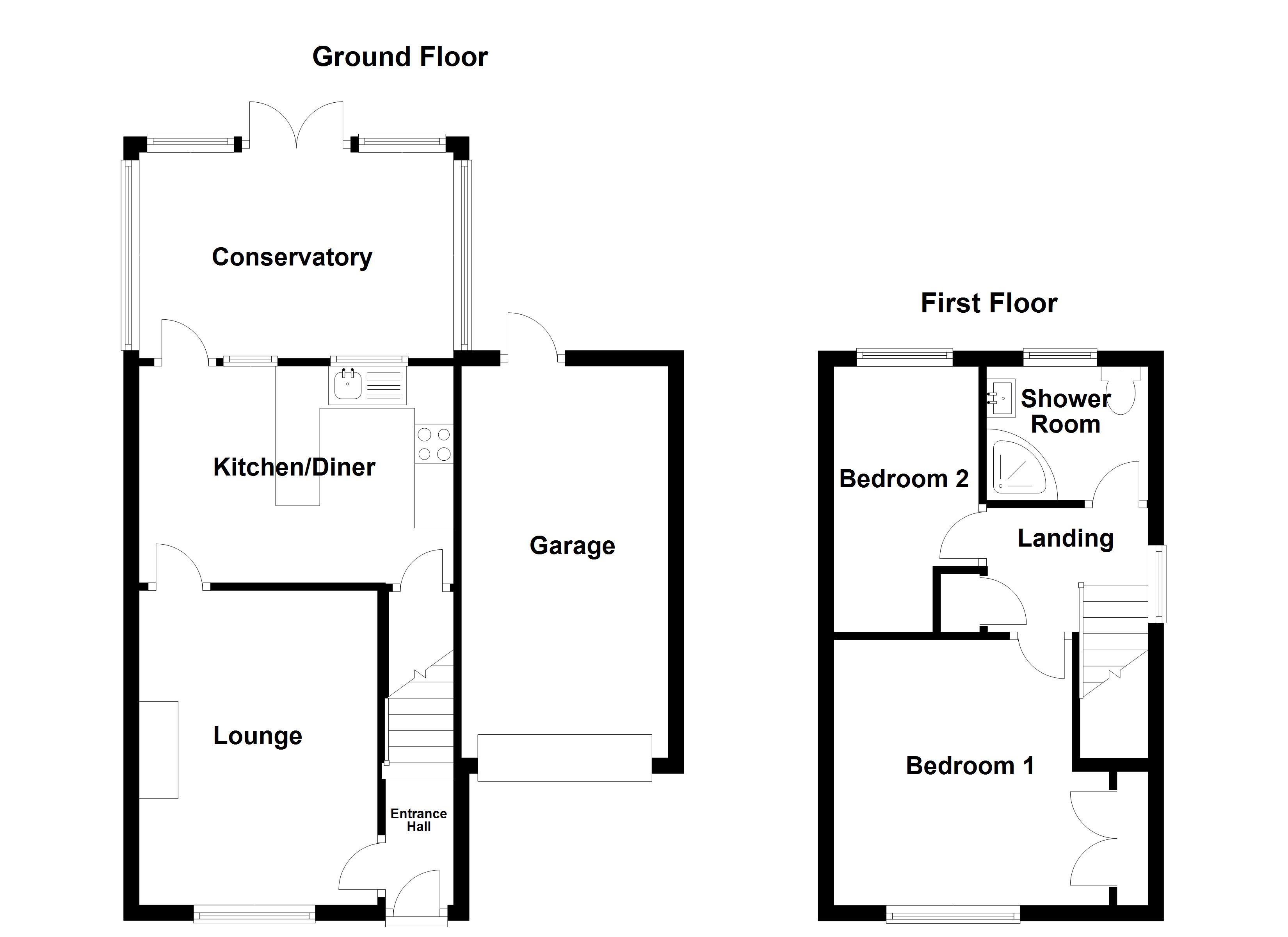 The accommodation comprising a welcoming entrance hall, lounge with feature fire place, 13ft kitchen breakfast room that opens to an 11ft conservatory. On the first floor are the two bedrooms and a bathroom fitted with an enclosed shower cubical. Outside there are front and rear gardens plus a driveway giving access to the garage and providing off street parking.