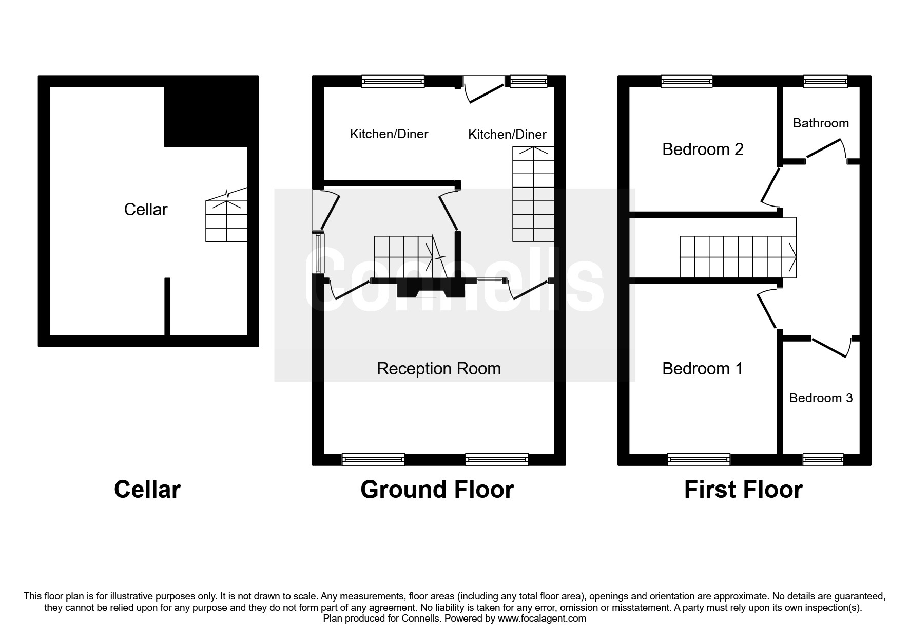 The property itself comprises open plan kitchen/ diner, separate living room, three bedrooms upstairs and family bathroom. Further benefits include a large cellar space. To the outside a large garden for a potential building plot subject to the relevant planning permission being granted!