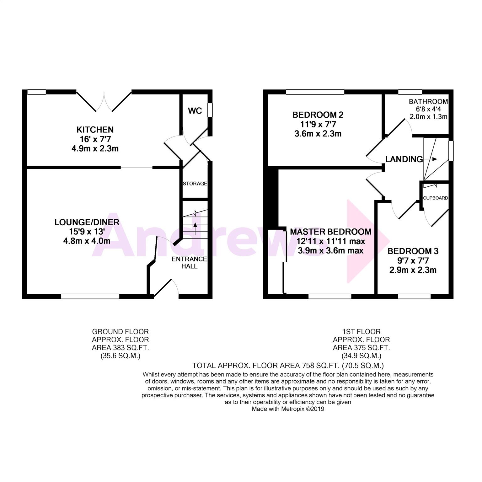 Upon entering the house, there is a small lobby for shoes and coats along with stairs leading to the first floor and a door through to the lounge / diner. The lounge / diner is a good size (15'9 x 13'0) and big enough to house a dining table. To the rear of the property is the fitted kitchen with double doors leading to the rear garden and a WC with additional storage cupboard.