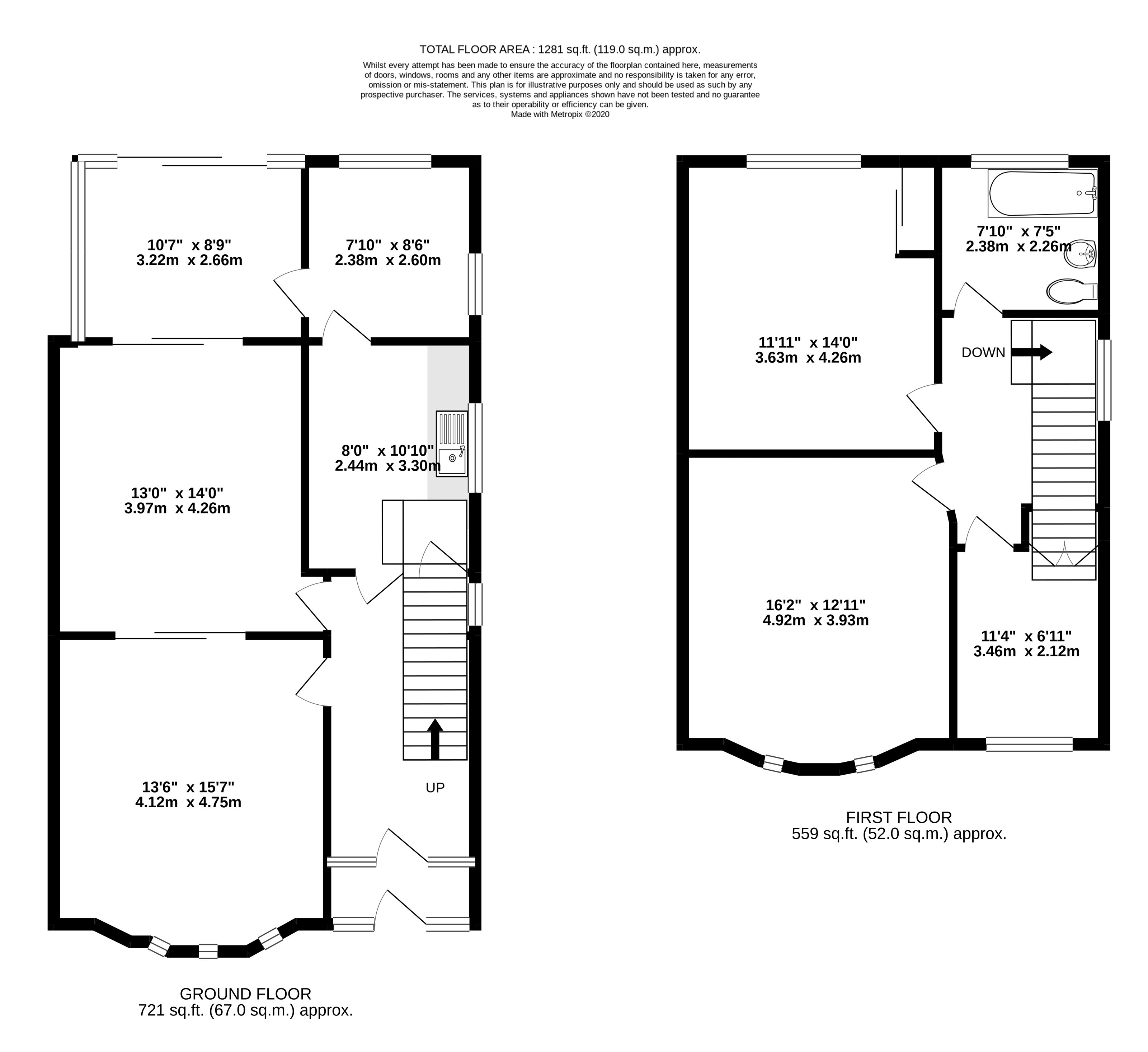 Double glazed UPVC and single glazed wood window, door leading to conservatory, power points, space and plumbing for washing machine.