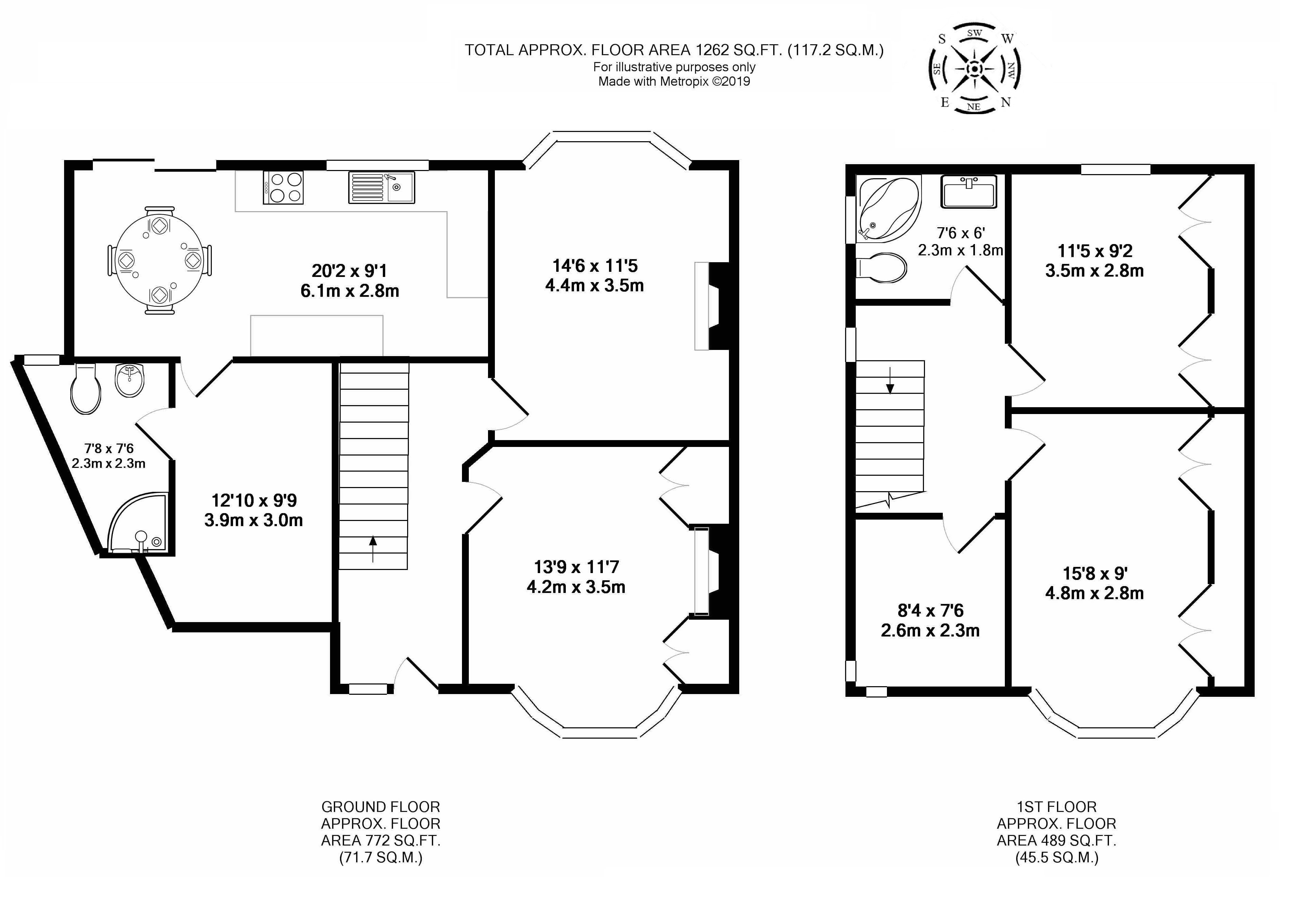 A wall mounted gas combination boiler, space for upright fridge freezer, space and plumbing for washing machine, access to loft area and door leading to downstairs shower room.