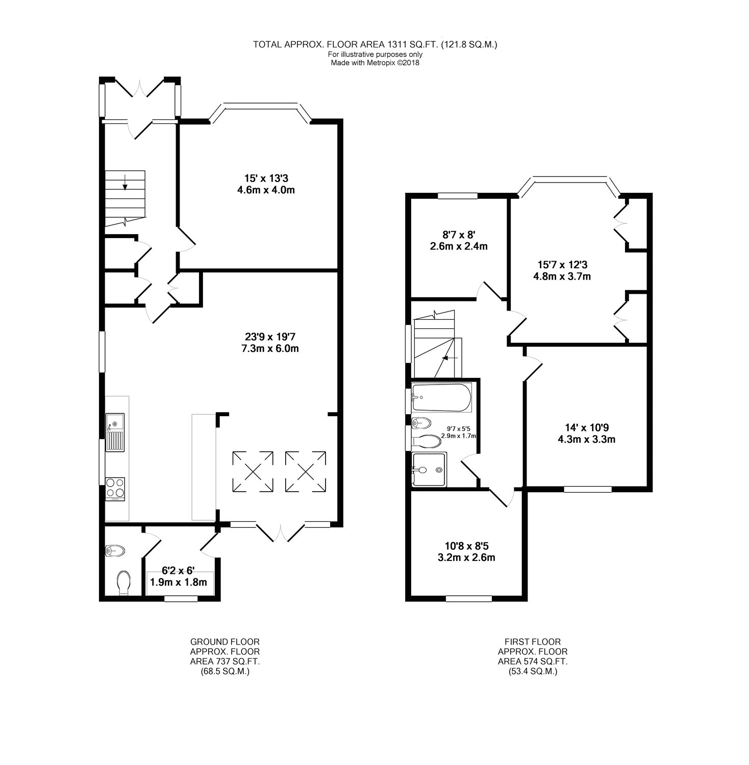Dual aspect, double glazed window to rear and half double glazed door to side overlooking and providing access to garden, fitted base unit, plumbing for washing machine, space for additional electrical appliance, radiator and doorway to downstairs WC.