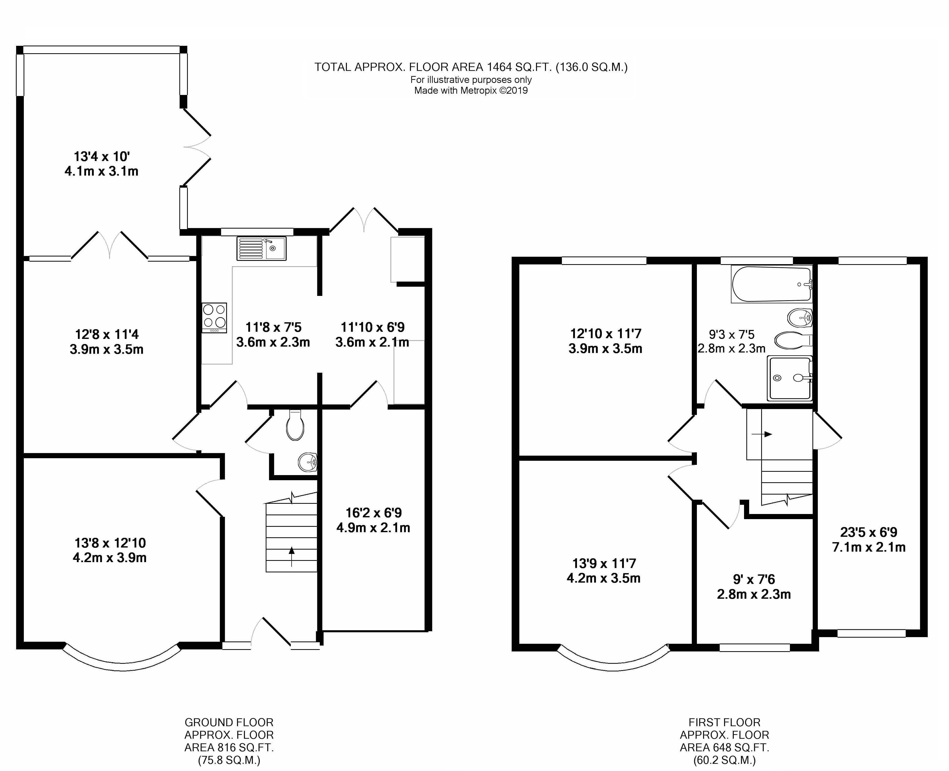 Stairs rising to first floor, obscured windows to front, low level cupboard housing electric meter and fuse board, second low level cupboard housing gas meter, radiator, doors to ground floor rooms, access to understairs storage and door leading to downstairs WC.