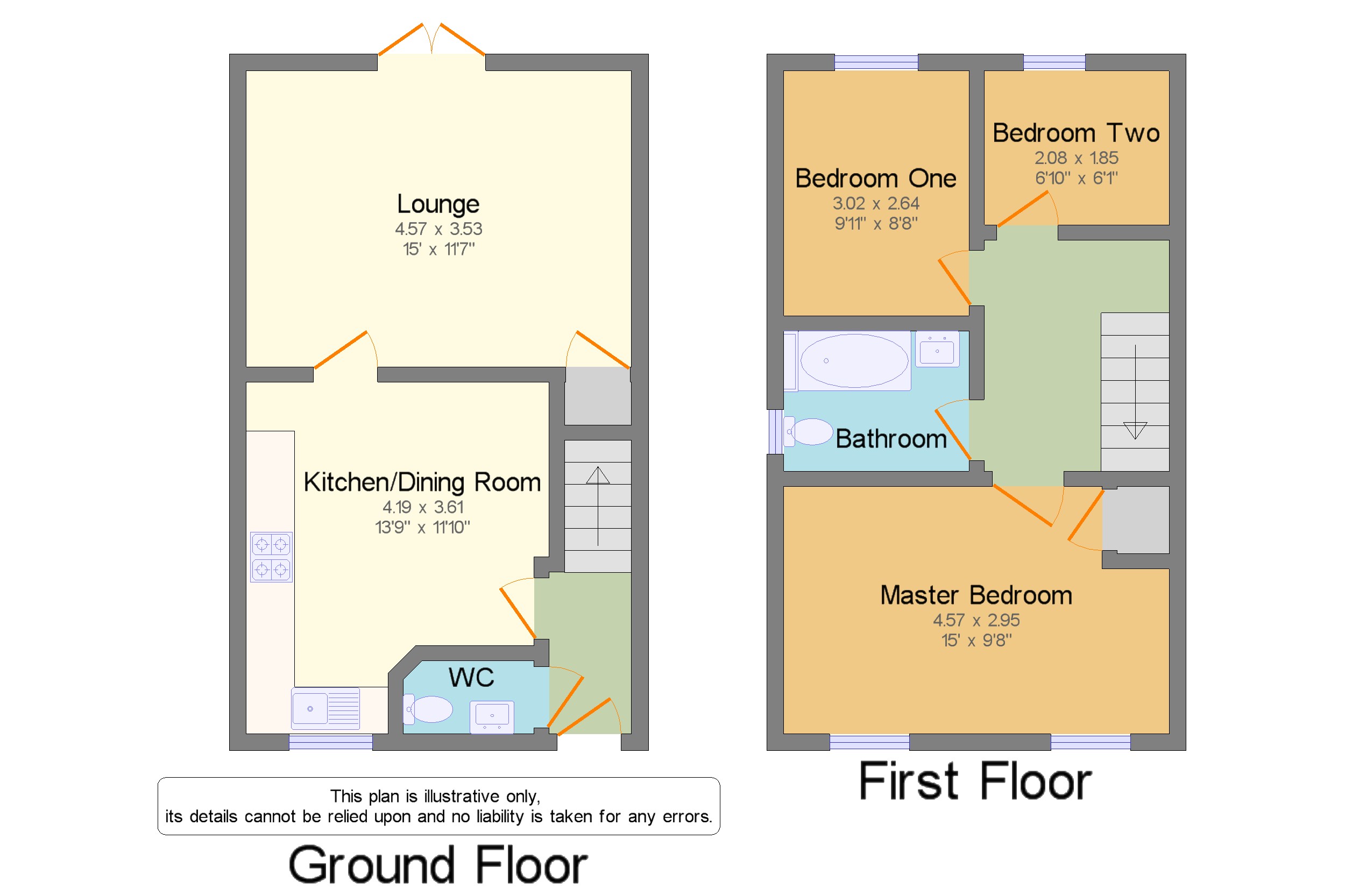 Bedroom 1 14'7" x 9'7" (4.45m x 2.92m). Two upvc double glazed windows to front, radiator, built in storage cupboard.