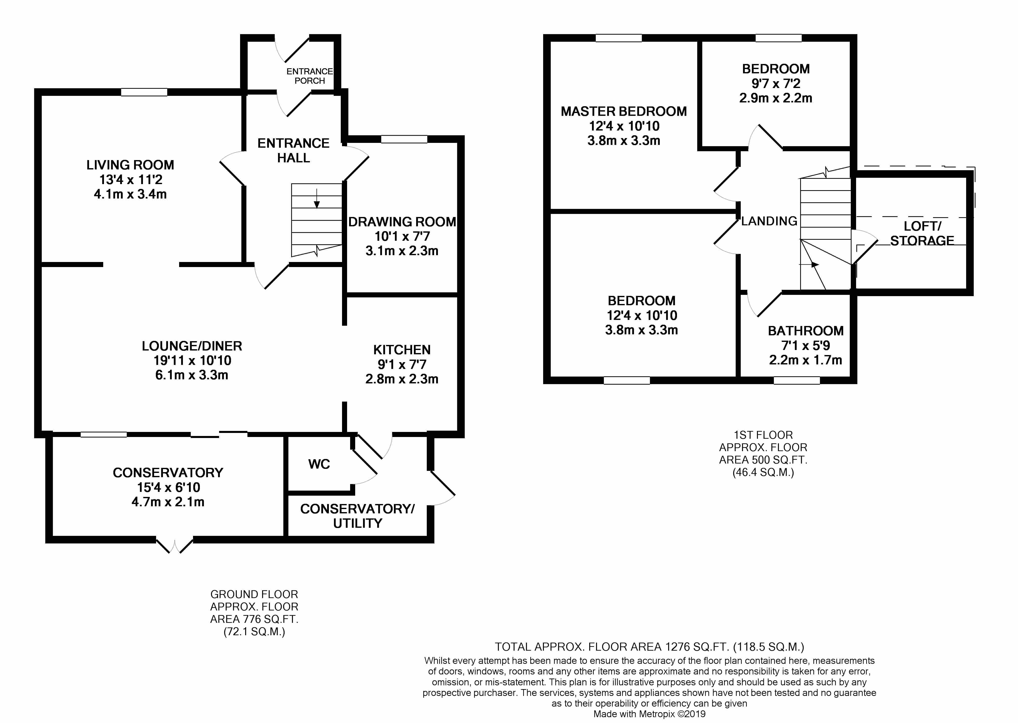 Raised door leading to loft/storage area, doors to all upstairs rooms, airing cupboard, loft access.
