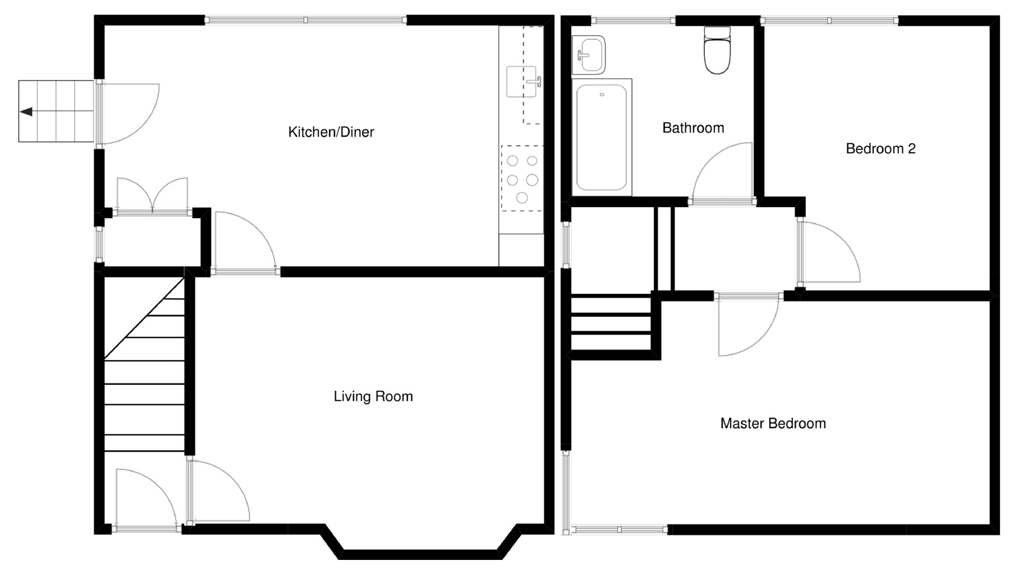 Internally the front entrance door opens to an inner hallway leading to the first-floor stairs and door into the living room. The living room gains from the natural light from the bay window to the front elevation. The kitchen is fitted with a range of modern wall and base units and has electric hob and oven. To the first floor, the landing leads to two double bedrooms with the master having a dual aspect window. The modern family bathroom comprises of a three-piece suit incorporating a walk-in shower with glazed sliding door. We believe this property to be of interest to a variety of buyers.