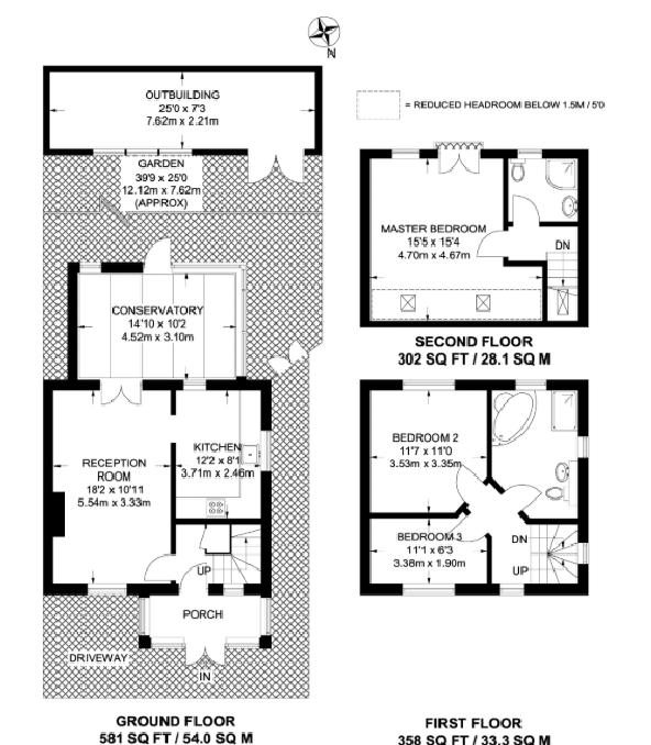 The ground floor comprises spacious entrance hall, kitchen with ample unit storage, large reception room with adjoining conservatory leading onto the private patio and large south facing garden. The first floor boasts a large double bedroom, third well proportioned bedroom along with the family bathroom/ continuing through the property, the second floor holds a large master bedroom and contemporary shower room.